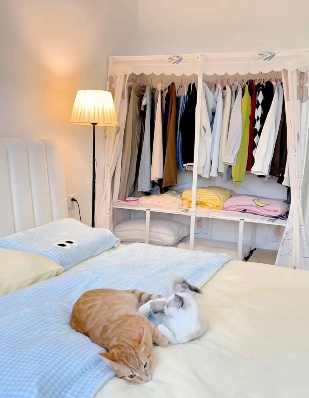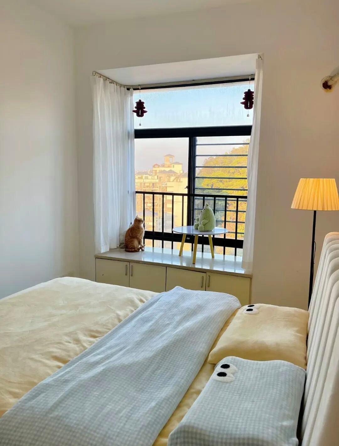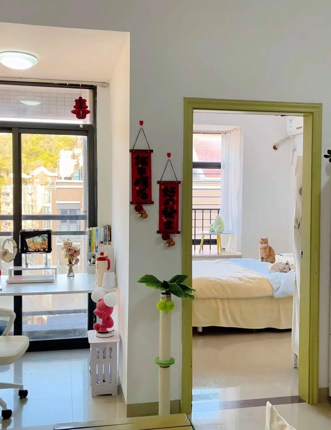 按照这个思路,不好看的地方用贴纸覆盖,再慢慢添置二手家具,弄一两盆绿植,摆放氛围灯,加上出租房超佳的采光,无论是白天还是晚上,小窝都似覆盖一层滤镜,温馨、美好。