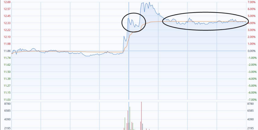 分时低吸的核心逻辑是识别主力试盘后的承接力度。从盘口走势特征来看,当股价经过主力试盘出现明显异动后,进入回调整理阶段,期间回踩均线但未发生有效破位时,往往预示着有主力在回调过程中主动吸纳抛盘,形成强势承接格局。此类盘口特征的判断,要求投资者具备较强的盘中盯盘能力,密切关注分时走势与均价线的联动关系,如果股价在回调过程中始终围绕均价线震荡运行,且每次下探至均价线附近时都能快速收复失地,则可判定为强势承接信号。在实操分析中,均价线作为反映多空力量平衡的核心指标,当股价稳定运行于均价线上方时,表明买方力量始终占据主导地位,市场做多情绪浓厚;而当股价持续在均价线下方徘徊,则说明市场卖压沉重,买方力量不足,此时不宜盲目进行低吸操作。