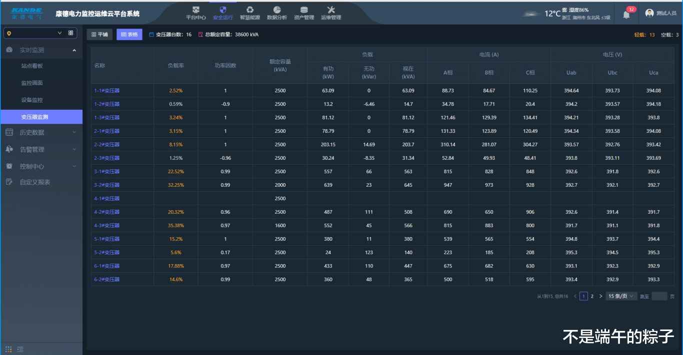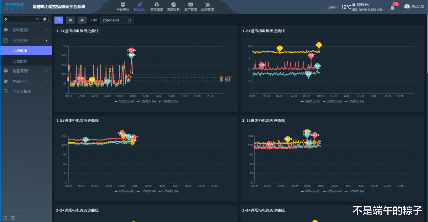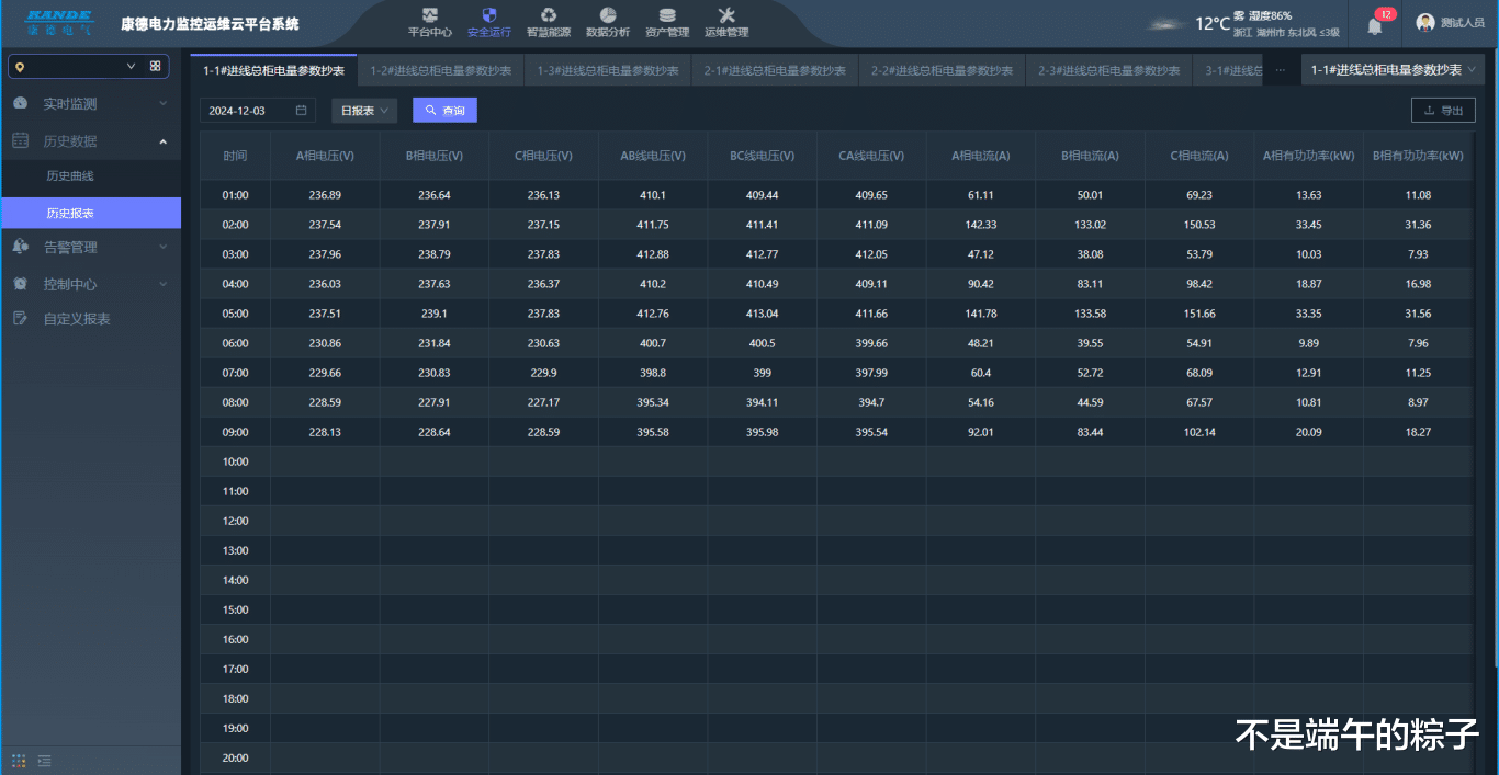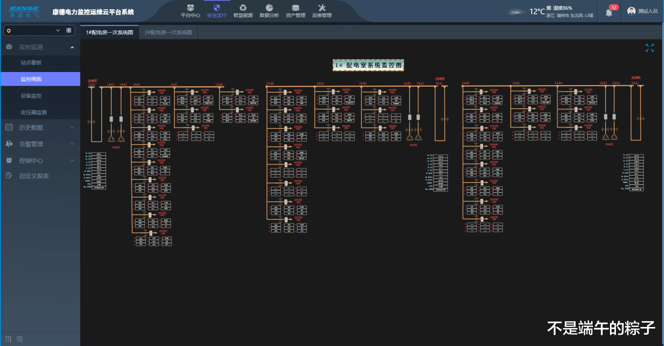 监测各个配电房内设备的电流、电压、功率、温度等实时数据。
