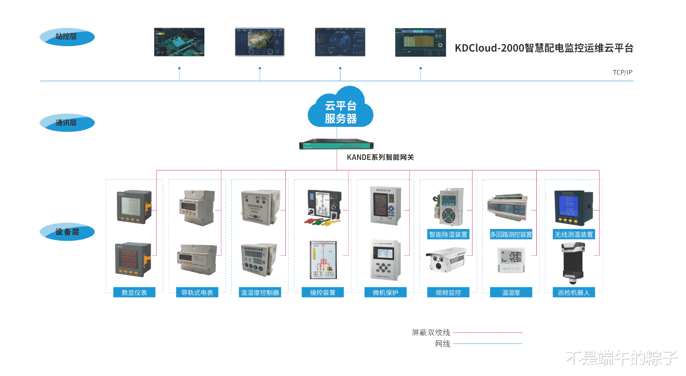 感知层:主要用于现场供配电设备状态信号的数据采集和控制。设备层由高压配电监控中所需的各种保护测控装置、智能仪表、测温探测器及其他智能终端组成。