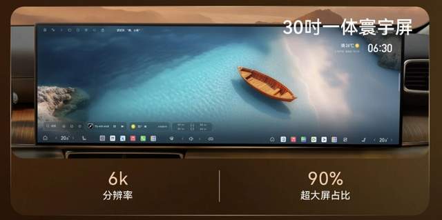 座舱内部,风云T11打造了极具科技感的智能空间。新车配备了30英寸6K一体寰宇屏与17.3英寸后舱娱乐屏,实现了前后排协同的显示效果,为全车乘员提供沉浸式娱乐体验。