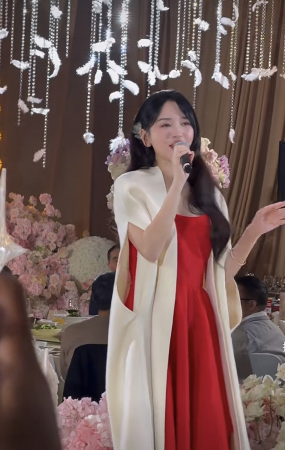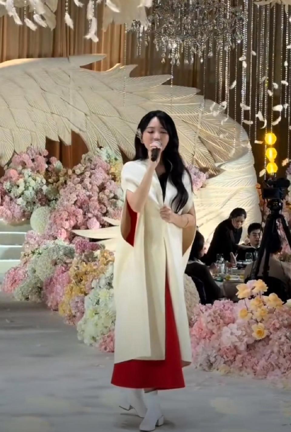 金莎在接受孙丞潇的求婚之后又回来工作了,旅行结束还是要回归生活。近些年金莎接了不少商演,这一次接的也是喜庆的婚礼商演。