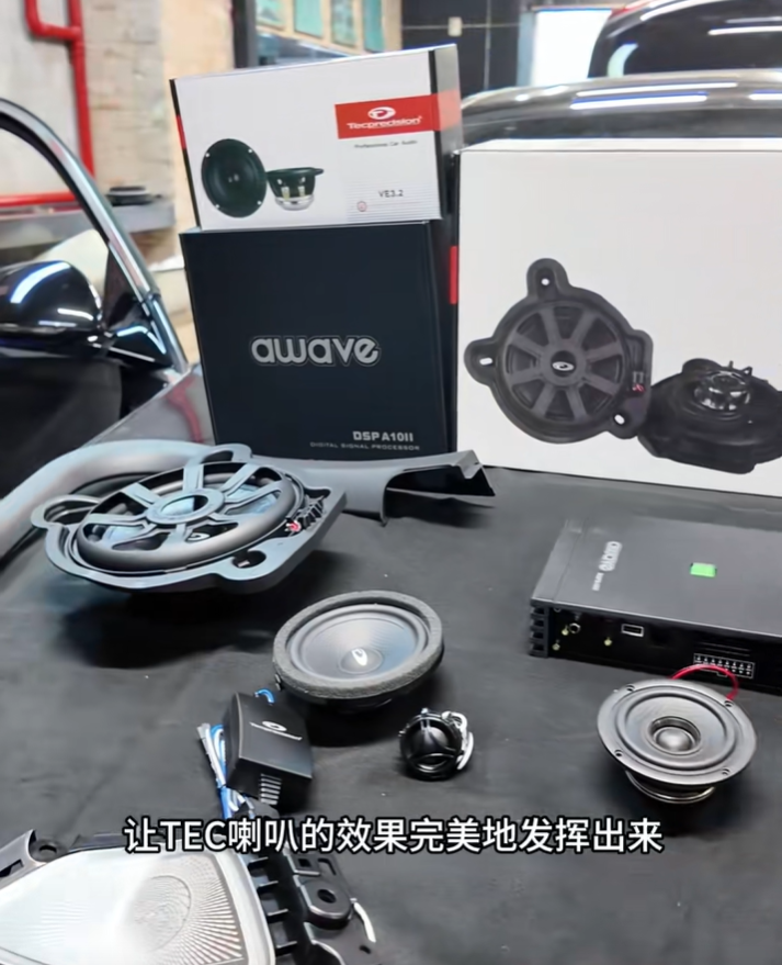 中置喇叭:TEC 同点声源中音,安装于中控台原位置,增强人声定位,让声音 “悬浮” 于仪表台上方。