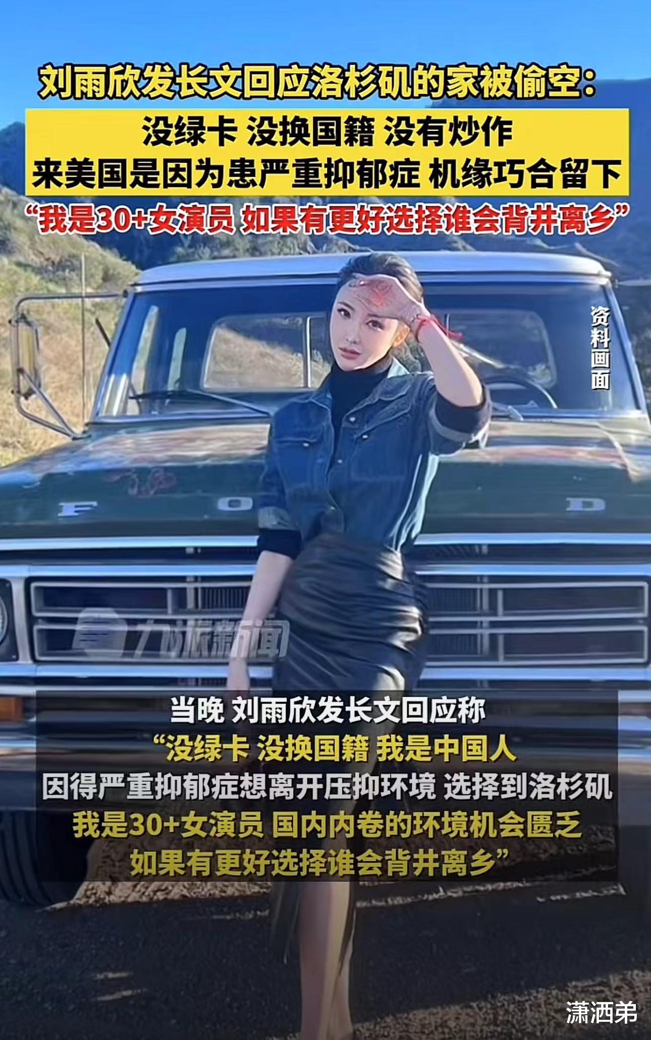 刘雨欣回应家被偷:去美国是因为患严重抑郁症!