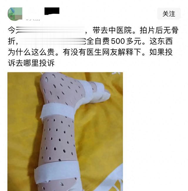 医生看完孩子后,给孩子拍了片,然后打了石膏,医生告知需要自费,500元啊!怎么打个石膏这么贵?这不是乱收费吗?该家长立即发文询问网友可以去哪里投诉医生?
