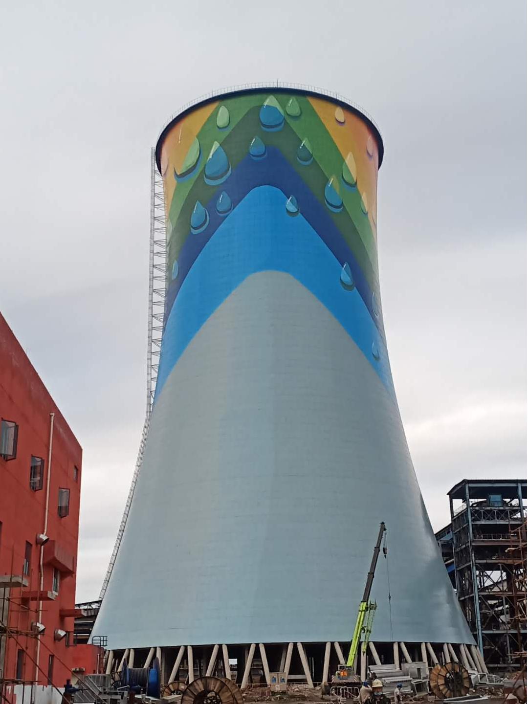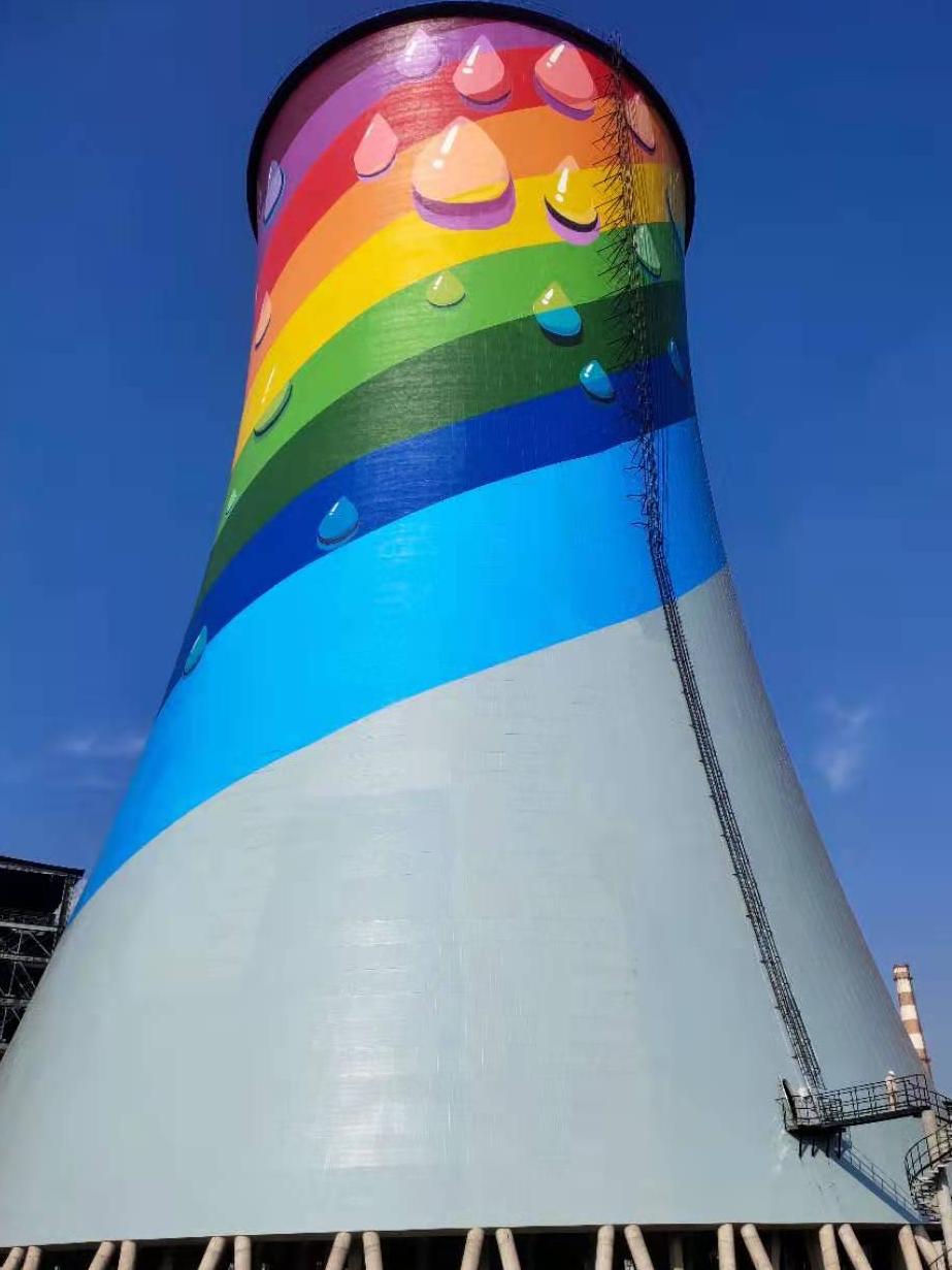 3.整体面漆:凉水塔外壁整体涂刷两道面漆,遮盖原有漆膜色差,确保整体色彩均匀一致。