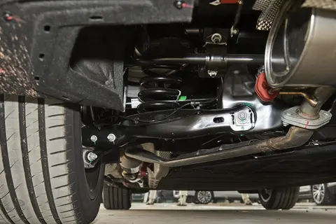 再加上底盘采用双叉臂式前悬挂+多连杆式独立后悬挂组合,这套组合能够很好的提升车辆的稳定性和舒适性。还经过欧洲团队三轮调校,配合FSD可变阻尼减振器,在过减速带时,车身弹跳抑制得很好,能有效过滤路面颠簸,让车内乘客几乎感受不到明显的震动;高速过弯时的侧倾也不大。