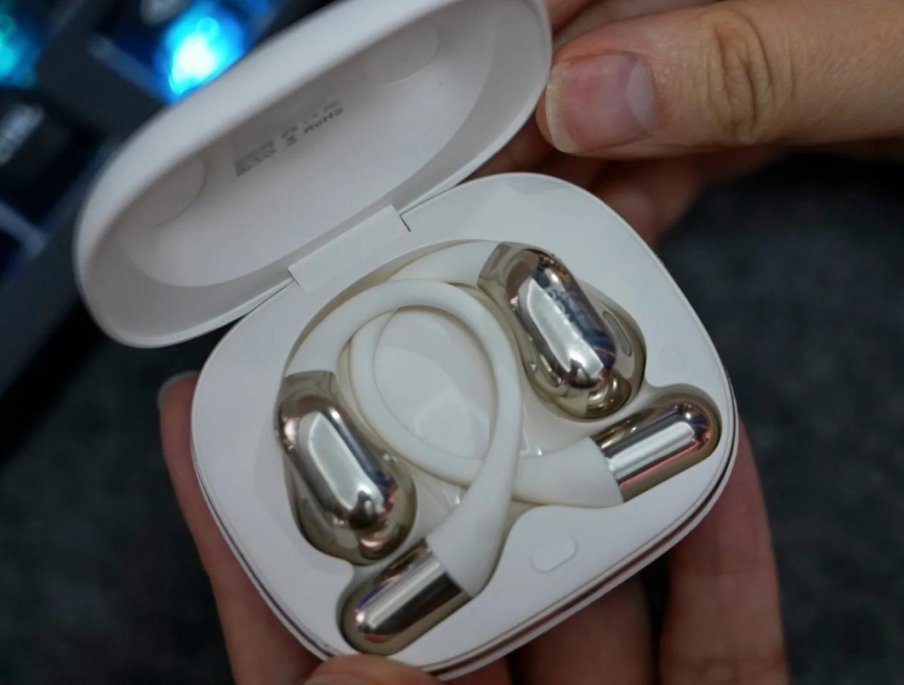 佩戴设计也很贴合日常使用,流线型工学设计耳挂能让喇叭精准对准耳道,既提升了音质集中度,也让佩戴更稳固,单耳 8 克的重量搭配亲肤液态硅胶,长时间戴也不会有坠耳、夹耳的不适感。