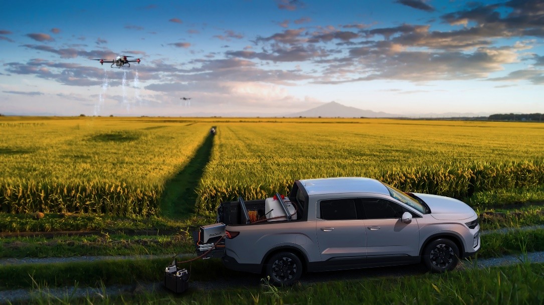 在植保圈层,雷达打造“空地一体化”作业解决方案,与江苏农垦苏舜集团达成1000台新能源皮卡采购协议,交付的长续航飞手版车型,搭载 36kW车规级移动电站,支持220V/380V多接口输出8分钟即可为无人机快充 2 块电池,满电状态可支撑全天70 +架次植保作业,用电成本降至每度 0.5 元,配合飞梭物联平台实现“车-机-云”协同,作业效率大幅提升,人力成本也得到了有效降低。双方本次的合作,成为低空经济和智慧农业领域的一个重要里程碑,为科技赋能智慧农业树立了新的标杆。