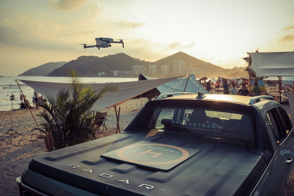 依托领先的新能源技术,雷达展现出独特的户外生态重构与智能化拓展智慧,推出了雷达飞梭无人机平台,让车辆成为户外能源平台,不仅可为无人机供电,实现空陆互联,协同作业(如农业植保、电力巡检),推动低空经济发展。而雷达万能栈能源平台则凭借光伏发电、储能与大功率外放电的兼容,成为户外作业与露营的“移动电站”,极大拓展了皮卡功能边界。