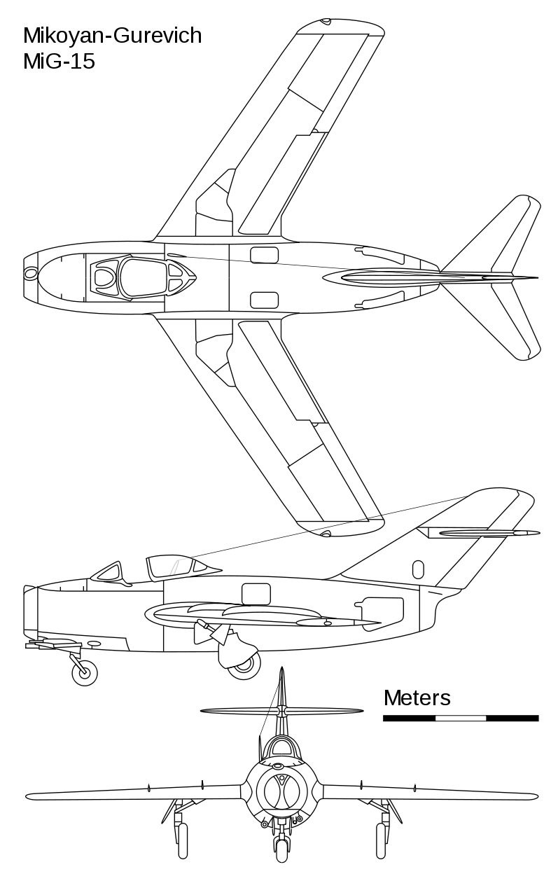 米格-15在第一代喷气战斗机中性能优异,其飞行速度、火力、机动性远远优于美国的F-80和F-84,只有美军的F-86性能相当。米格-15的37毫米机炮可轻松地击穿F-86的飞机装甲,虽然在水平盘旋、俯冲加速性和作战半径上不如F-86,但由于推重比大,爬升性能出众,因此在垂直机动性方面压倒了美国当时的所有同类飞机。由于米格-15的垂直机动能力优秀,所以米格-15和F-86的性能各有优劣 。