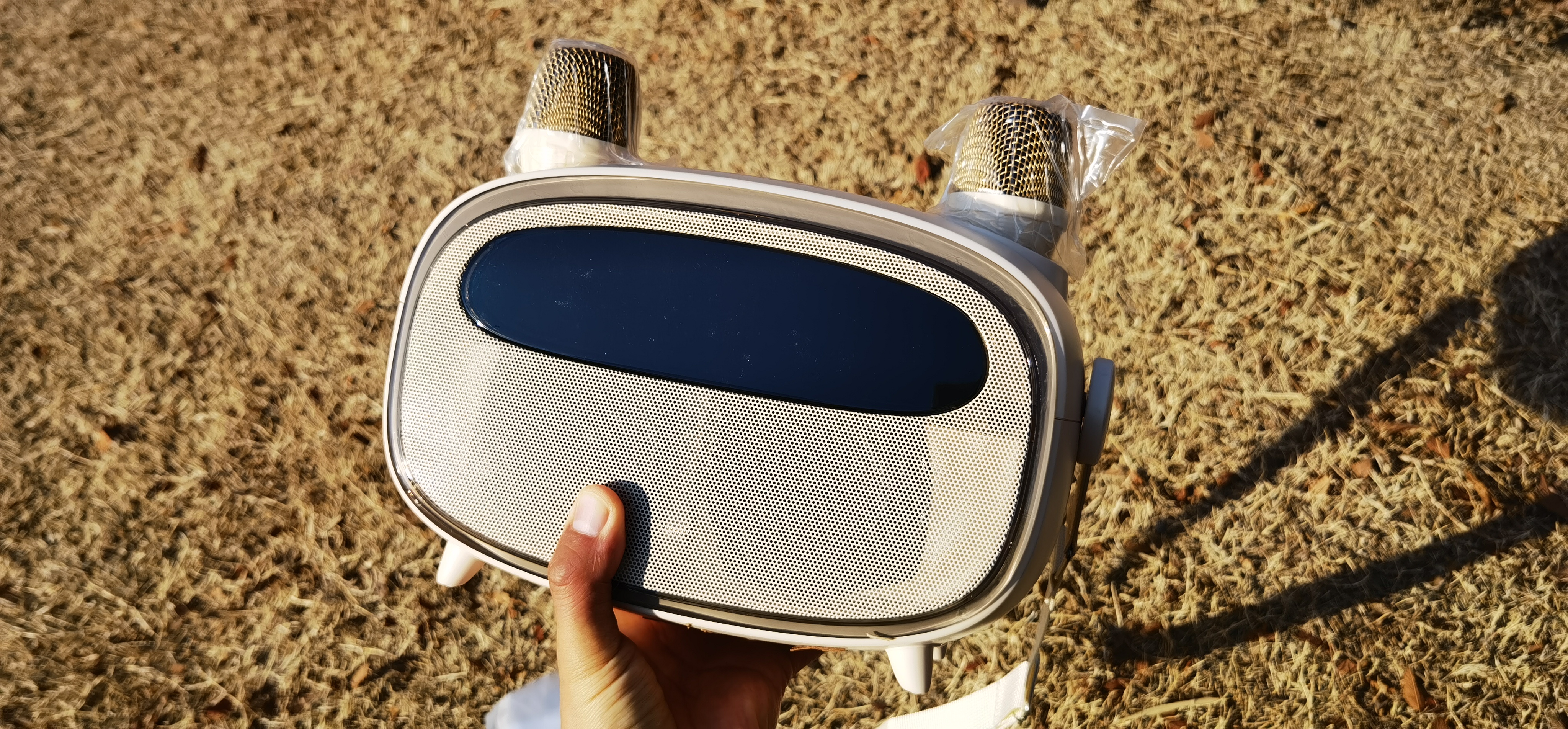 摆脱了传统方方正正音箱的造型,因为有两个麦克风装饰,正面一股机械卡通风,颜值很高,走在哪里都有人问多少钱买的,确实很讨喜。