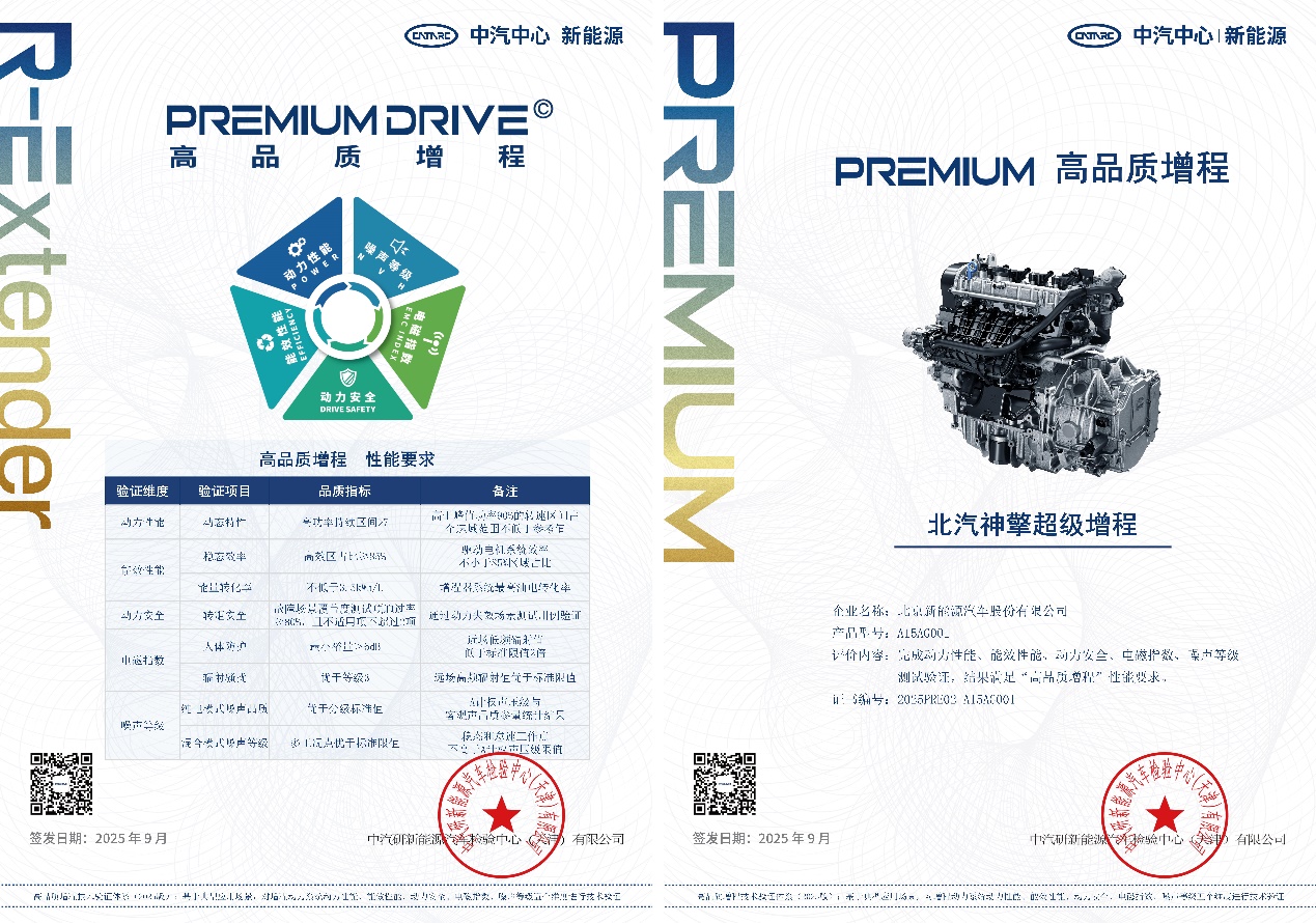 面对增程车普遍存在的 “抖动大、噪音吵、亏电动力弱” 痛点,全新阿尔法 T5 搭载北汽神擎增程动力 + 宁德时代骁遥增程专属电池,以技术突破重新定义增程体验,更获中汽研 “高品质增程” 权威认证。