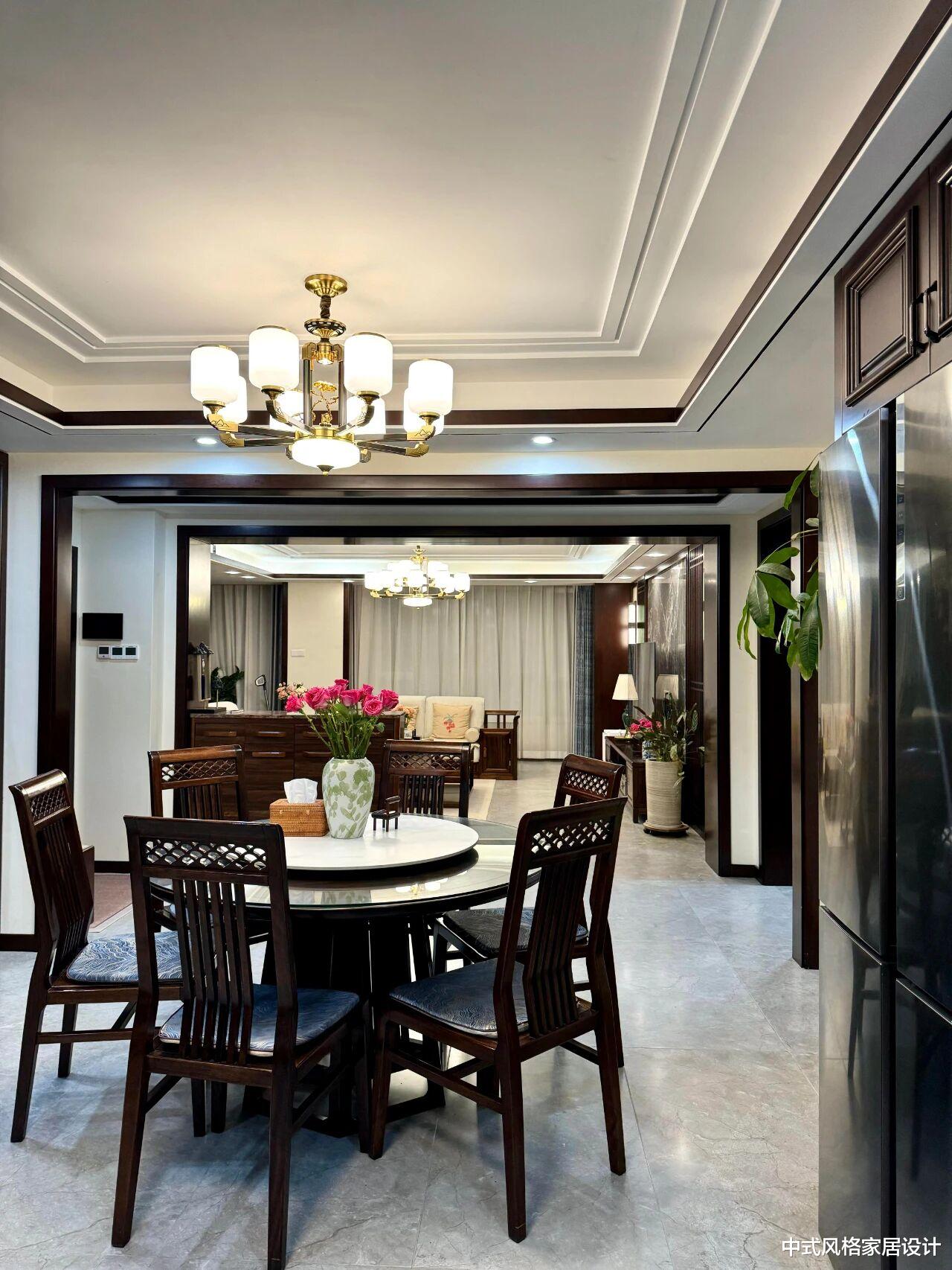 空间布局:隔而不断新中式讲究“隔而不断”的空间意境。我在224平的空间里,巧妙运用了月洞门、屏风、博古架等元素划分功能区域。客厅与茶室之间,一扇精致的回纹图案屏风既保持了空间的独立性,又不完全封闭视线,营造出通透流畅的视觉效果。顶楼户型常有梁柱明显的问题,我将其转化为设计亮点。通过木格栅吊顶装饰横梁,既掩饰了结构缺陷,又增添了空间层次感,使天花板成为一道风景。