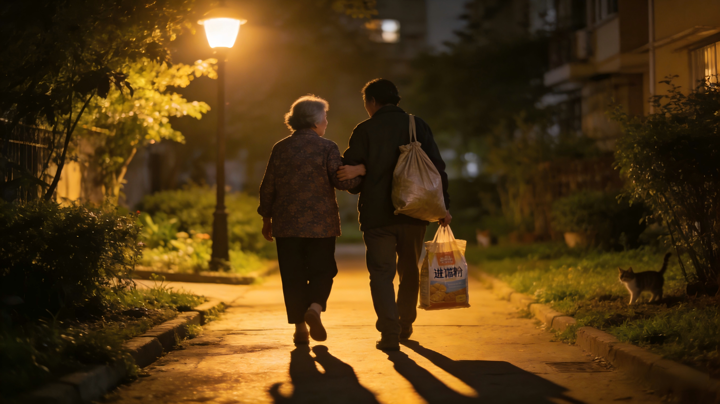 那天晚上,母亲没有留下吃饭。她带着王秀兰走了,说是要去「喂晚上的那一拨」。我站在窗前,看着两个老太太的身影消失在小区花园的拐角。母亲走得很慢,王秀兰搀着她的胳膊,蛇皮袋在路灯下晃来晃去,像个月亮。