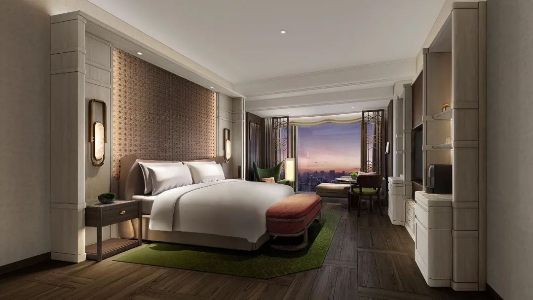 酒店仅设105间客房,室内设计以钧窑和定窑为灵感来源,因此大床和双床房将呈现不一样的元素,浴室在格栅掩映的落地玻璃后若隐若现。开业后将为南京城带来全新的奢华体验,不知道能不能刷新南京城市中心的房价天花板呢?
