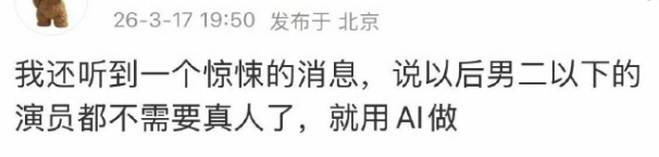 近期更是有传闻平台将男二及以下配角视为“无流量价值”环节,计划用AI替代真人以压缩成本,目标形成“主角真人撑场+配角AI填充”模式。