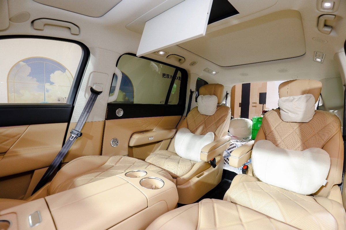更贴心的是,全车三排都配备了Type-C快充口,支持66W超级快充,全家充电不再“抢插座”。后备箱常规容积798L,三排放倒后可拓展至“搬家级”空间,婴儿车、露营装备、滑雪板统统装得下。而且,还能用语音控制“一键变床”,展开就是1.8米大床,配合5G WiFi,荒郊野地不断网,简直露营首选。