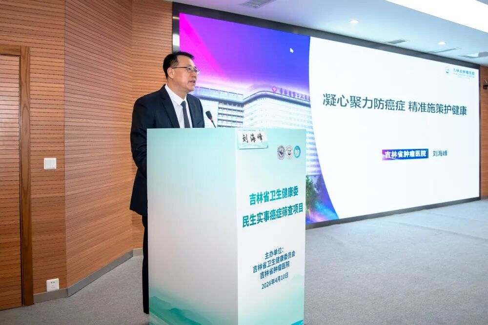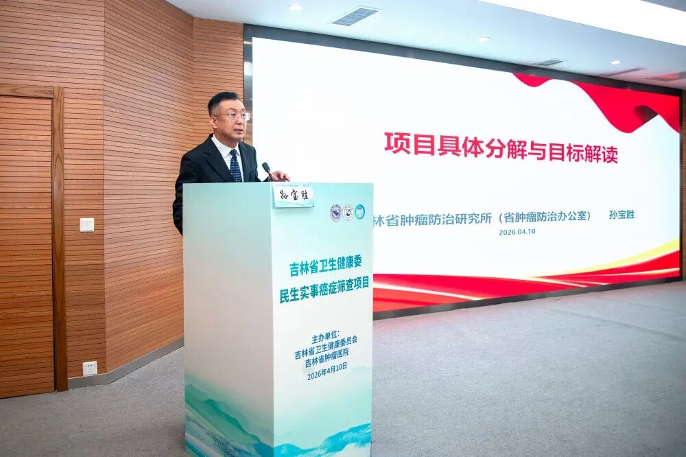 为深入贯彻“健康中国2030”战略部署,全面落实“十五五”癌症防治行动要求,扎实推进省卫健委12项民生实事落地,将癌症早期筛查作为重点项目抓实抓好,助力大病不出省与健康吉林建设,2026年4月10日,吉林省卫生健康委2026年民生实事癌症早期筛查项目启动会在吉林省肿瘤医院高新院区召开。省卫生健康委副主任邓立权、医疗应急与监督处处长张巍,吉林省肿瘤医院党委书记刘海峰、院长王茂楠,长春工业大学数学与统计学院院长刘铭,全省各项目地区卫生健康行政部门、各定点筛查医院以及省癌症防治管理办公室(省肿瘤医院)相关业务骨干、医务人员共200余人参加会议。会议由王茂楠主持。