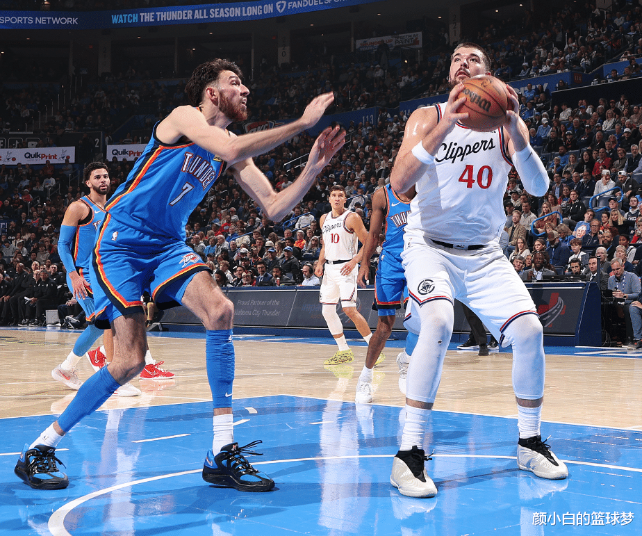 全场比赛,SGA三节32分7篮板6助攻,小卡三节打卡22分8篮板6助攻,快船先发五人都得分上双,可雷霆三巨头都上20+,不得不说快船本赛季真的太菜。