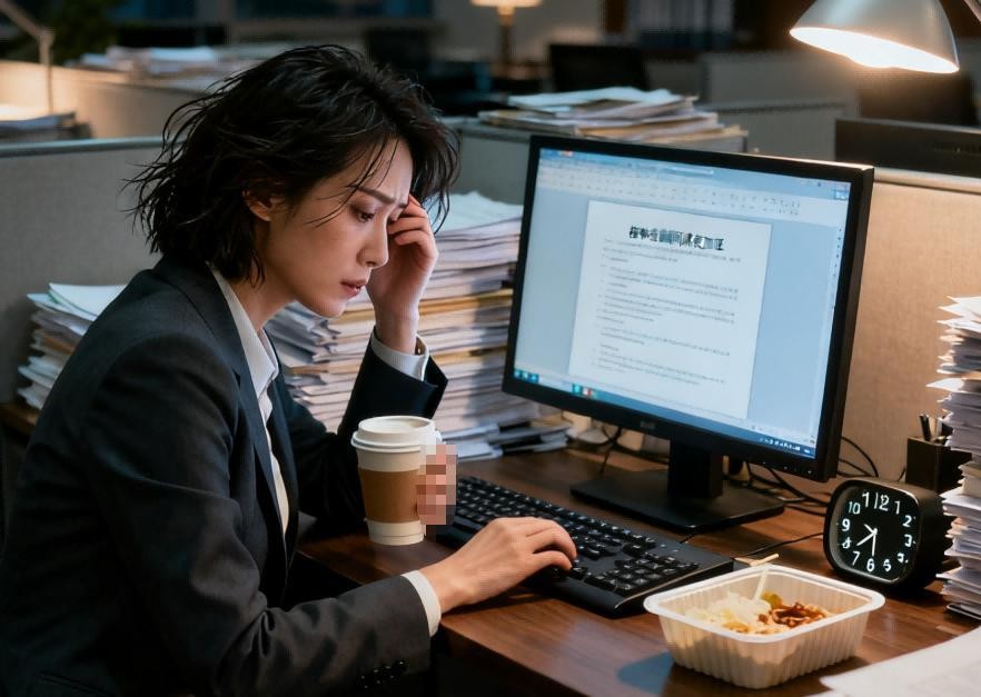 回到工位不久,唐婧雯突然头部阵痛袭来,像有人从后脑勒住她的颈动脉,太阳穴跳动得剧烈。她下意识闭眼,耳边传来轻微耳鸣。合伙人走过来刚叫她名字,她却怔怔没听见。等她抬起头时,脸颊已泛出不正常的红潮,眼神呆滞,整个人神情恍惚。