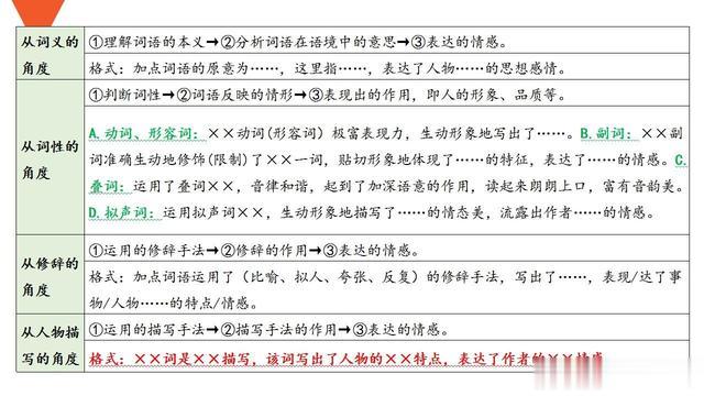 修辞题:手法+内容+效果(例:比喻让描写更生动)