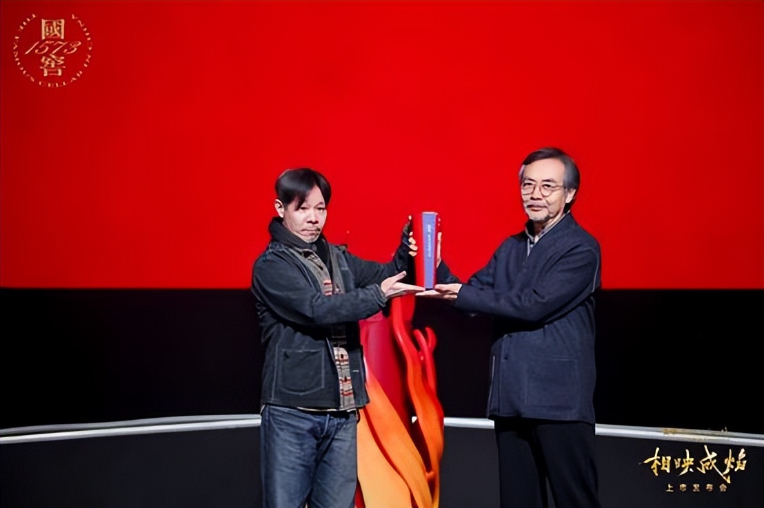 图说:艺术家隋建国与毛焰进行“国窖1573艺术公益”薪火传递
