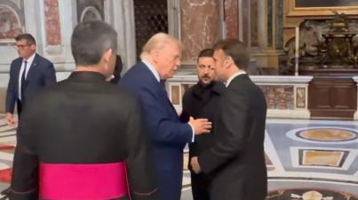 而最让网友吵翻的是梵蒂冈教皇方济各葬礼上的握手风波特朗普正准备和乌克兰总统泽连斯基说话。