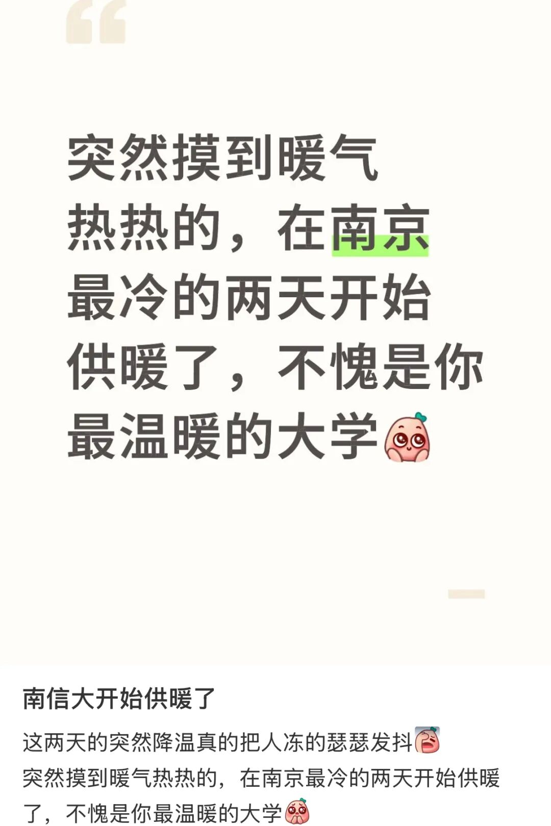 宿舍生活更是被暖气改写了“命运”,宿舍温馨、舒适秒变“冬日乐园”,暖气就像南信大人冬日里的“外挂”,把被寒意消解的快乐成“吨”地拾了回来。