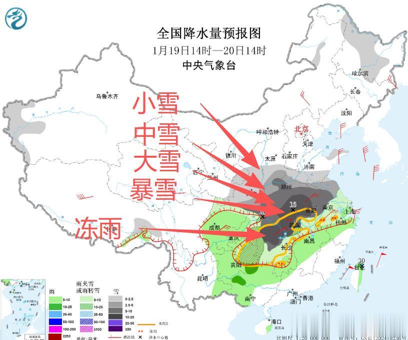 从今天夜间的气象图可以看出,今天夜间至明天早晨的降雪和冻雨范围将会达到最大限度值,强降雪天气和冻雨天气将会同时出现,气象最为复杂的当属在安徽、湖北、湖南、河南南部等地,降雪和冻雨天气将会轮换出现,这给我国的交通带来很大的不利影响。