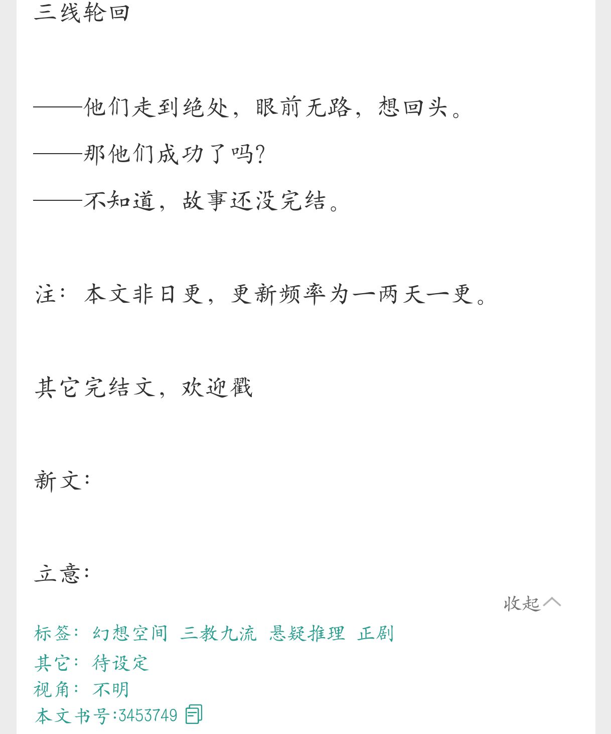也因为这个吧,到最后看到他在另一个灵魂的驱使下终究重回人间,看着那伏笔千里的一个又一个番外,我反而生出了“终于来了”的平静感。