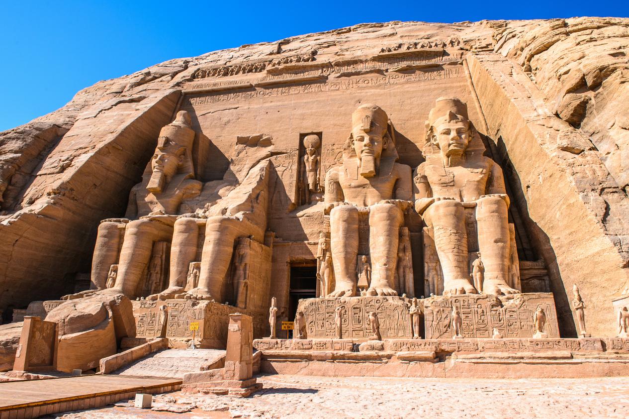 阿布辛贝神 庙:由拉美西斯二世为纪念妻子所建的宏伟建筑,雕刻精细,气势非凡,是埃及代表性的世界遗产之一。