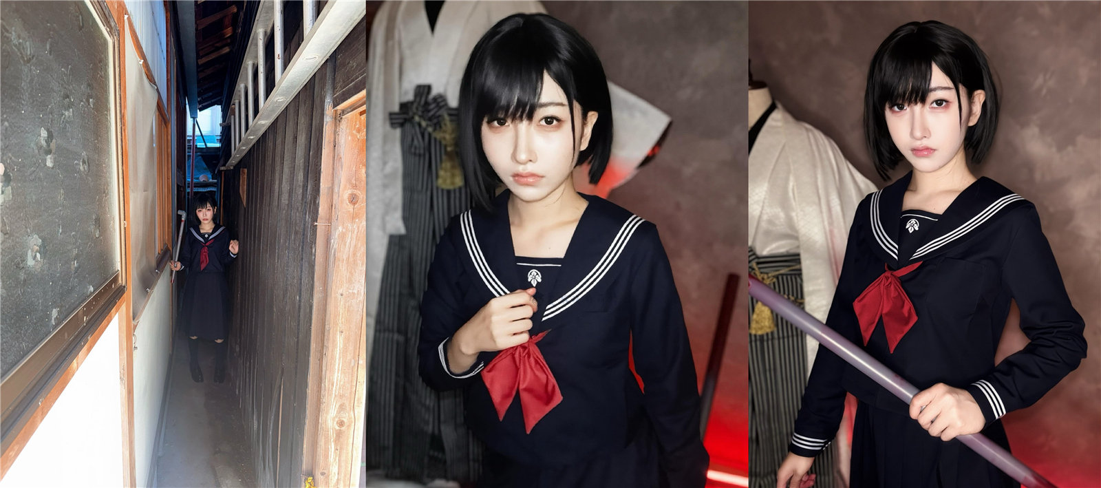 不得不说,“月海つくね”的扮相和游戏角色极为类似,乍一看还真的分不清这是现实照片还是游戏截图,用现代一个流行的词语来描述的话,那就是又美又飒,既美丽动人,又帅气利落!怎么说呢,个人觉得只要妆容过关,穿上那套衣服,拿上经典的水管武器,大家都能还原得不错,毕竟深水雏子本身的设定就是年轻的女学生。