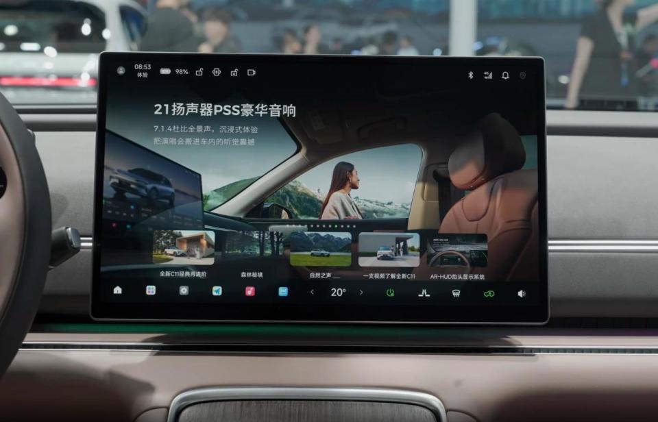 还有那个60 英寸的 AR-HUD,启动车辆后,时速、导航箭头直接投在前挡风玻璃上,就像浮在车头前方几米远的地方。之前开高速总忍不住瞟仪表盘看速度,现在余光一扫就能瞥见时速,导航提示也会提前用箭头标出路况,比如 “前方 500 米左转”,箭头就顺着车道往前指,完全不用频繁转头看中控屏,分心的功夫都省了。