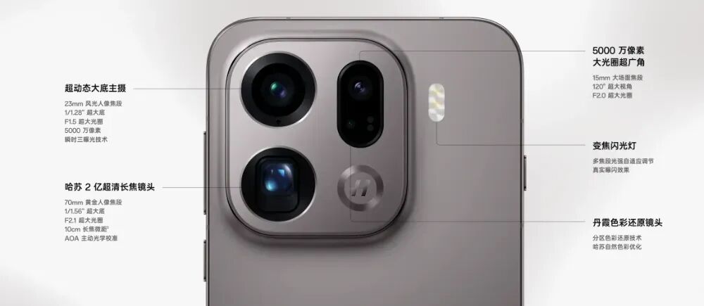 2亿潜望中长焦+10X潜望超长焦,2亿中焦大概率是同档最大进光量,可近可远,超长焦是5000W,行业最强且唯一10X光变。