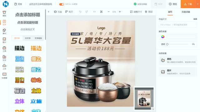 我现在做所有商用图都靠它,从店铺主图到宣传海报,跟着模板点一点就能做,关键是价格低还能全商用,后面详细说。