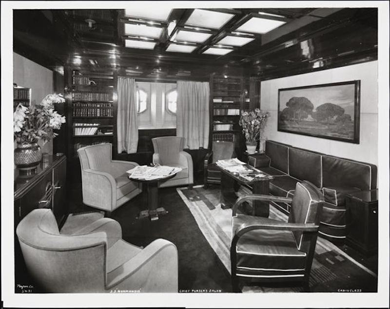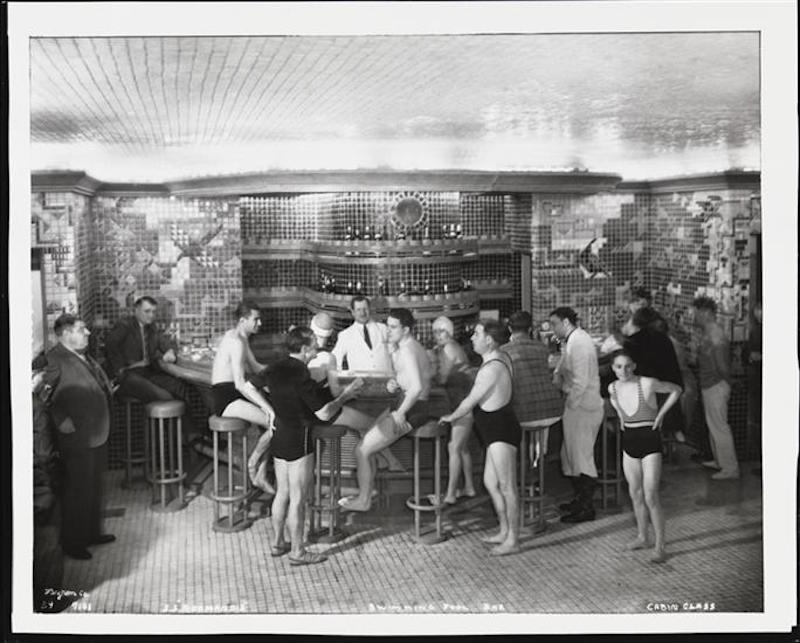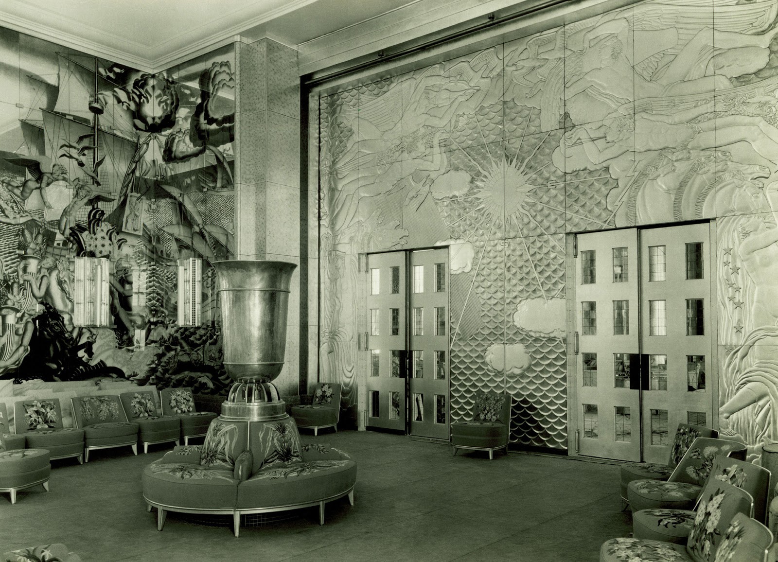 那会儿美国本土实行禁酒令,可管不到公海那边。法国邮轮公司看准商机,想要掏空富豪们的口袋,于是把巴黎艺术精粹搬到船上来。头等舱餐厅比凡尔赛镜厅长,还竖着12根刻着法式美学的莱俪水晶柱。