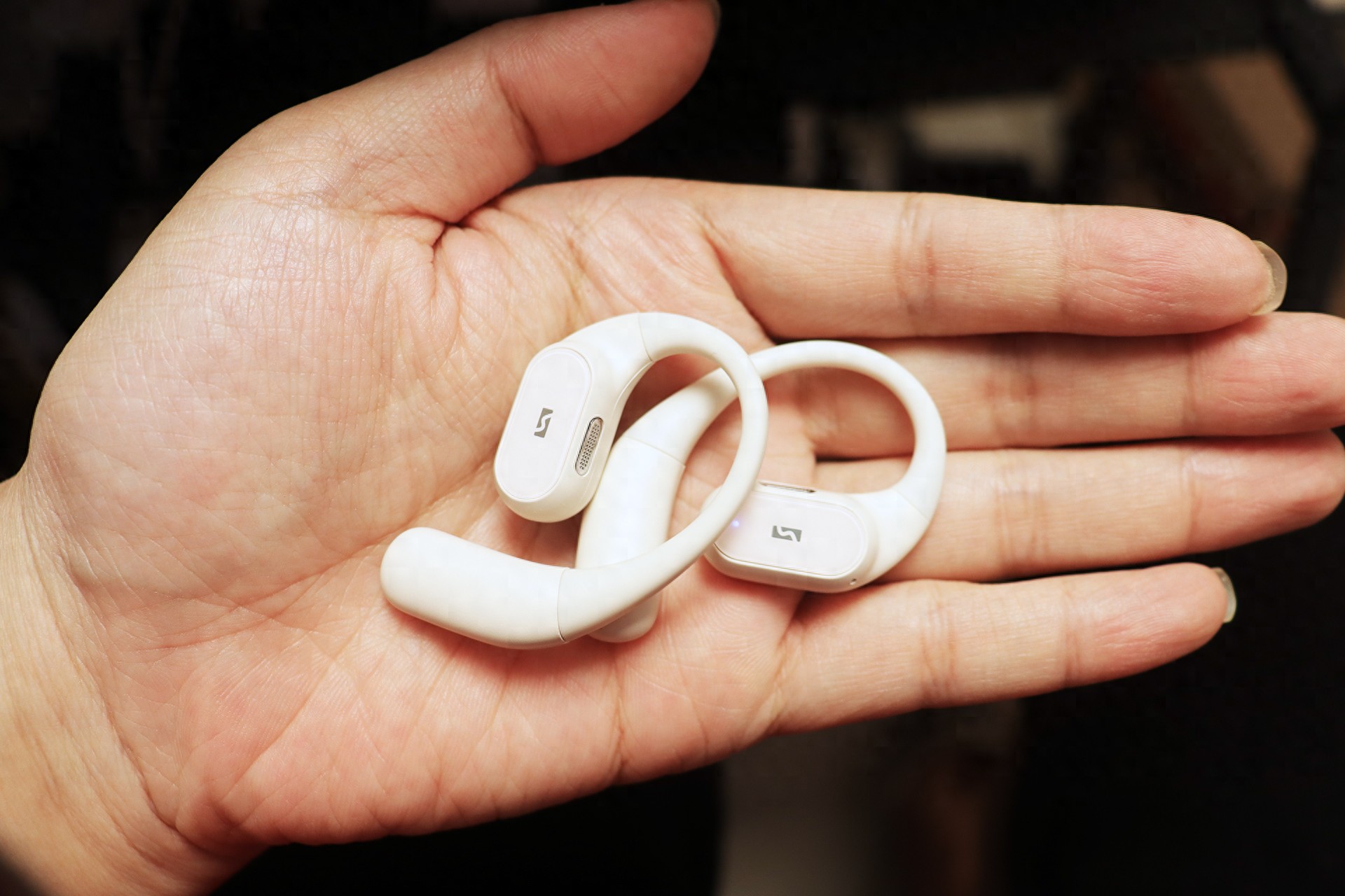打工人戴耳机动辄就是半天,重量和佩戴感真的太关键了!蛇圣羚月单耳才 6.5 克,比一张 A4 纸还轻,挂在耳朵上几乎没存在感,摸鱼摸一下午都忘了摘。最戳我的是它的 3mm 记忆钛合金丝耳挂,软乎乎的还特别有弹性,戴眼镜的时候完全不硌耳后,跑步通勤晃来晃去也不会掉,出汗了也不黏皮肤,干爽一整天。午休想趴桌睡会儿?侧躺也完全不压耳,零压感真不是吹,戴一天耳朵都没红印子~