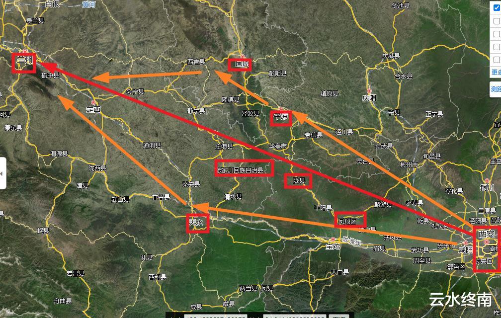 陇关道是从凤翔往西,沿着千河,一路过千阳陇县,然后翻越陇山到达现在甘肃的张家川,一路往兰州方向。