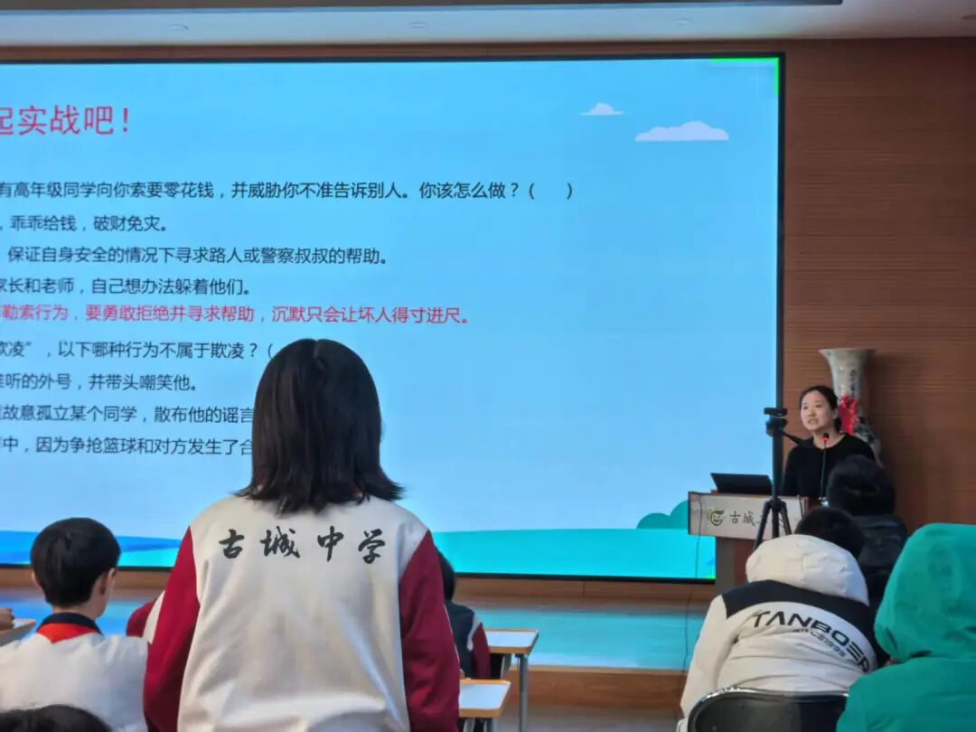 本次讲座由区司法局机关党支部副书记、古城中学法制副校长马欣主讲,全体师生积极参与,共同开启了一场生动的法治学习之旅。
