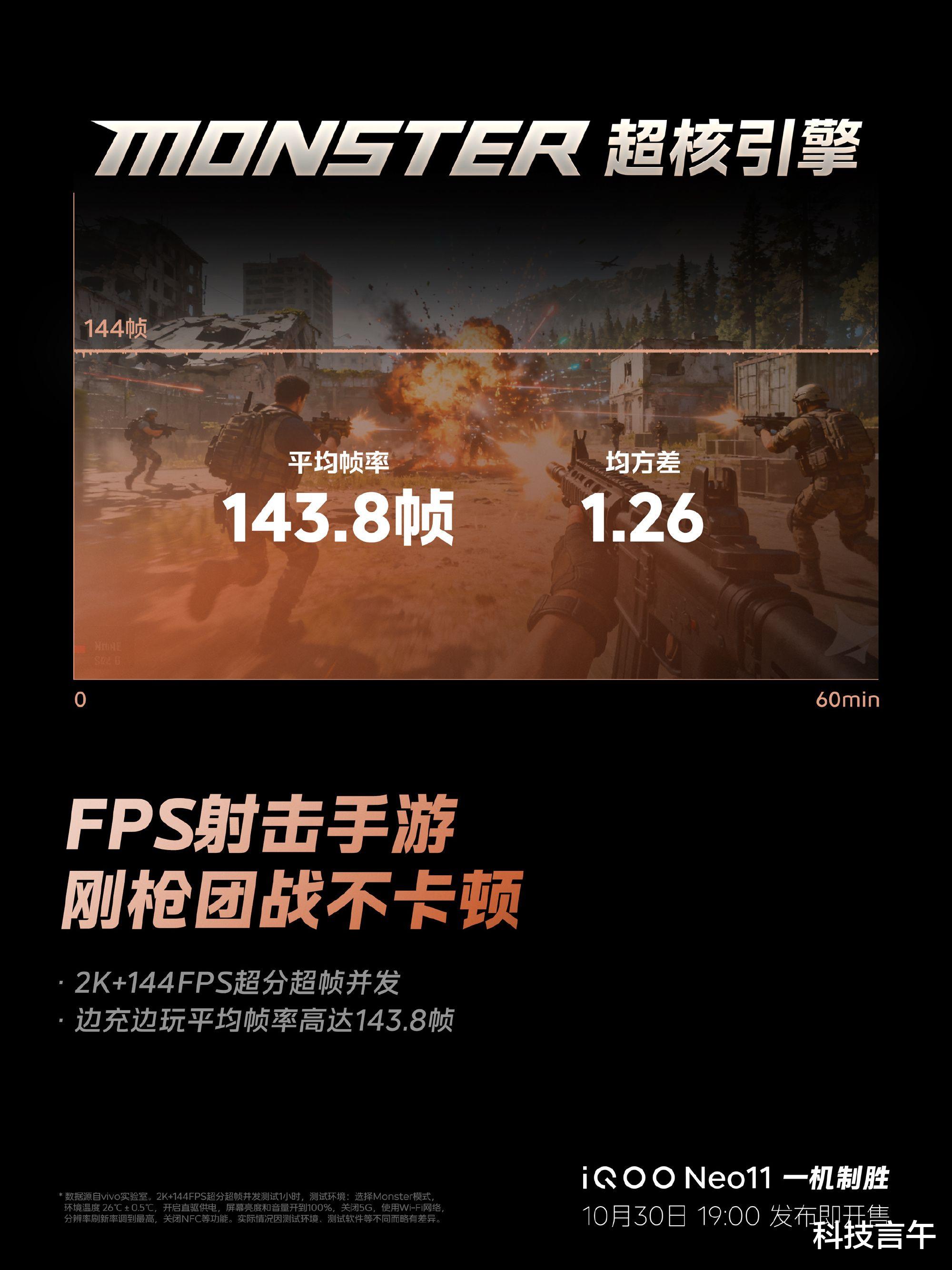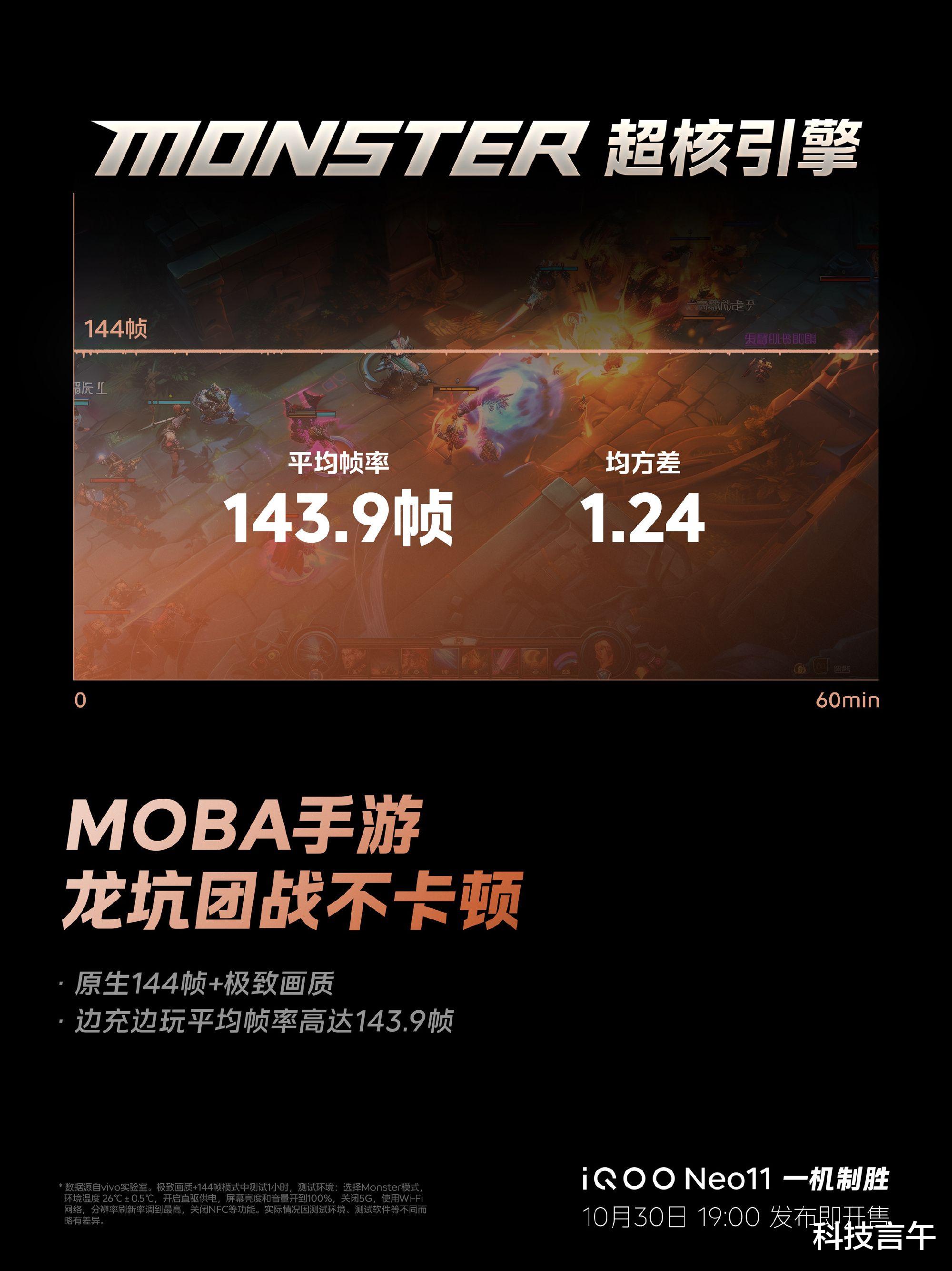 iQOO Neo11的“超神标准版”定位,最终还是要靠游戏实战来检验。随着10月30日发布会的临近,官方终于放出了iQOO Neo11在多款Top级游戏重载场景下的实测数据。结果显示,在iQOO 15同款Monster超核引擎的加持下,Neo11的游戏表现堪称恐怖,轻松拿捏各种高压场景。