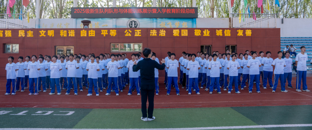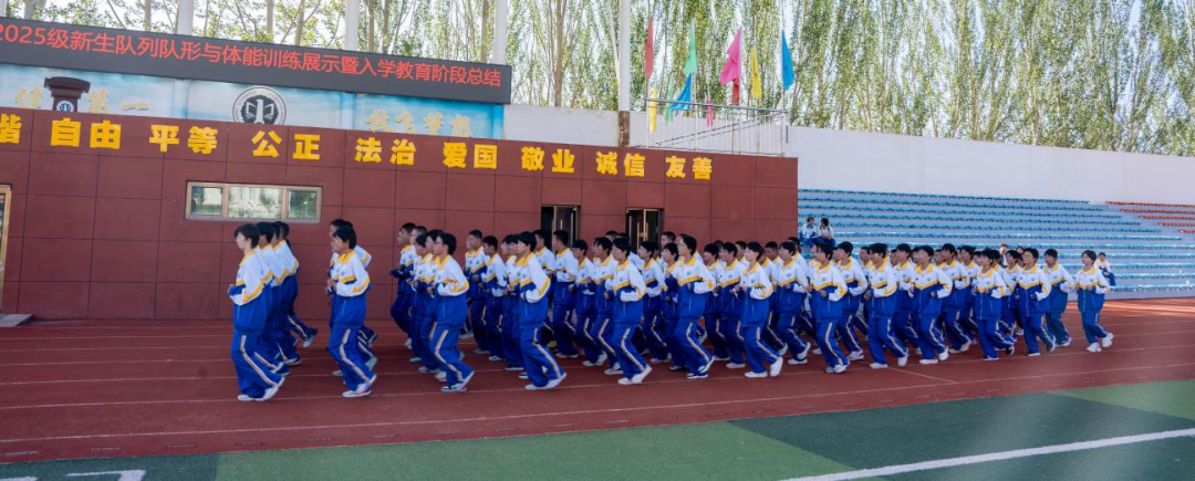 五天的汗水,淬炼了筋骨,磨砺了意志;五天的陪伴,凝聚了师恩,汇聚了友情。此次入学教育成果展示,不仅是对新生五天训练的全面检验,更是对他们未来成长的激励与展望。愿鄂尔多斯市第一中学伊金霍洛分校2025级全体新生,能将训练中积蓄的力量转化为求知的动力,以梦为马,不负韶华,在美丽校园书写属于自己的青春新篇章!