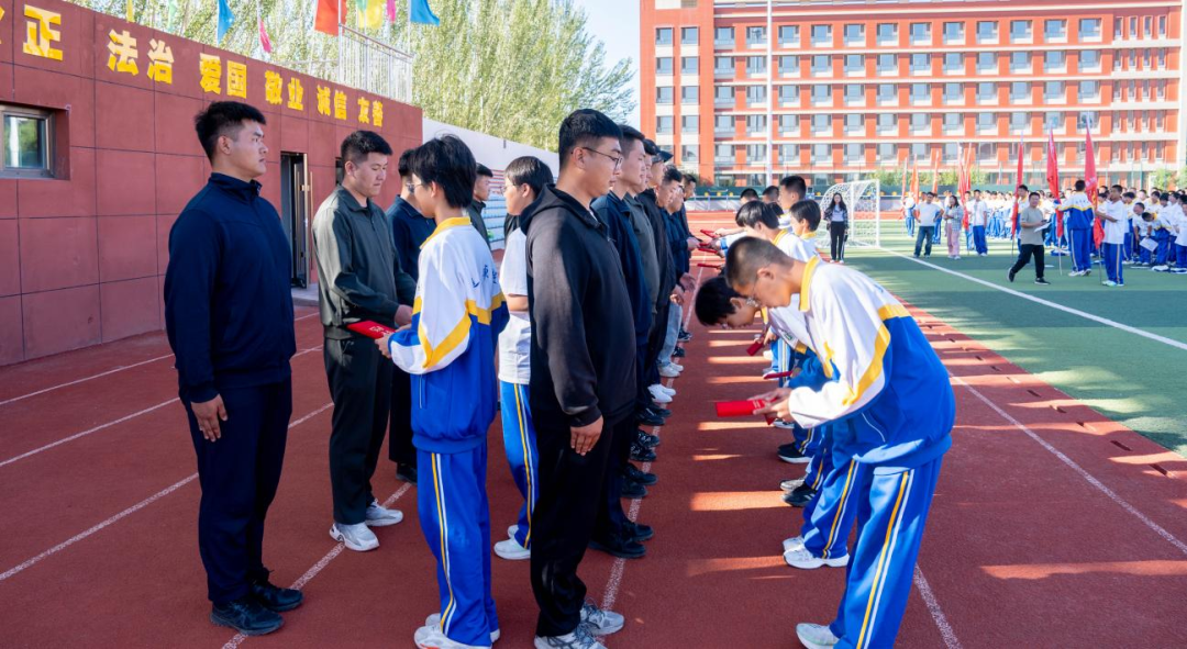 大会在庄严而富有传承意义的国旗班交接仪式中拉开帷幕。2024级国旗班队员将鲜艳的五星红旗郑重交到2025级新队员手中。这一刻,传递的不仅是一面旗帜,更是一份沉甸甸的责任、一份光荣的使命、一份永不褪色的爱国情怀。