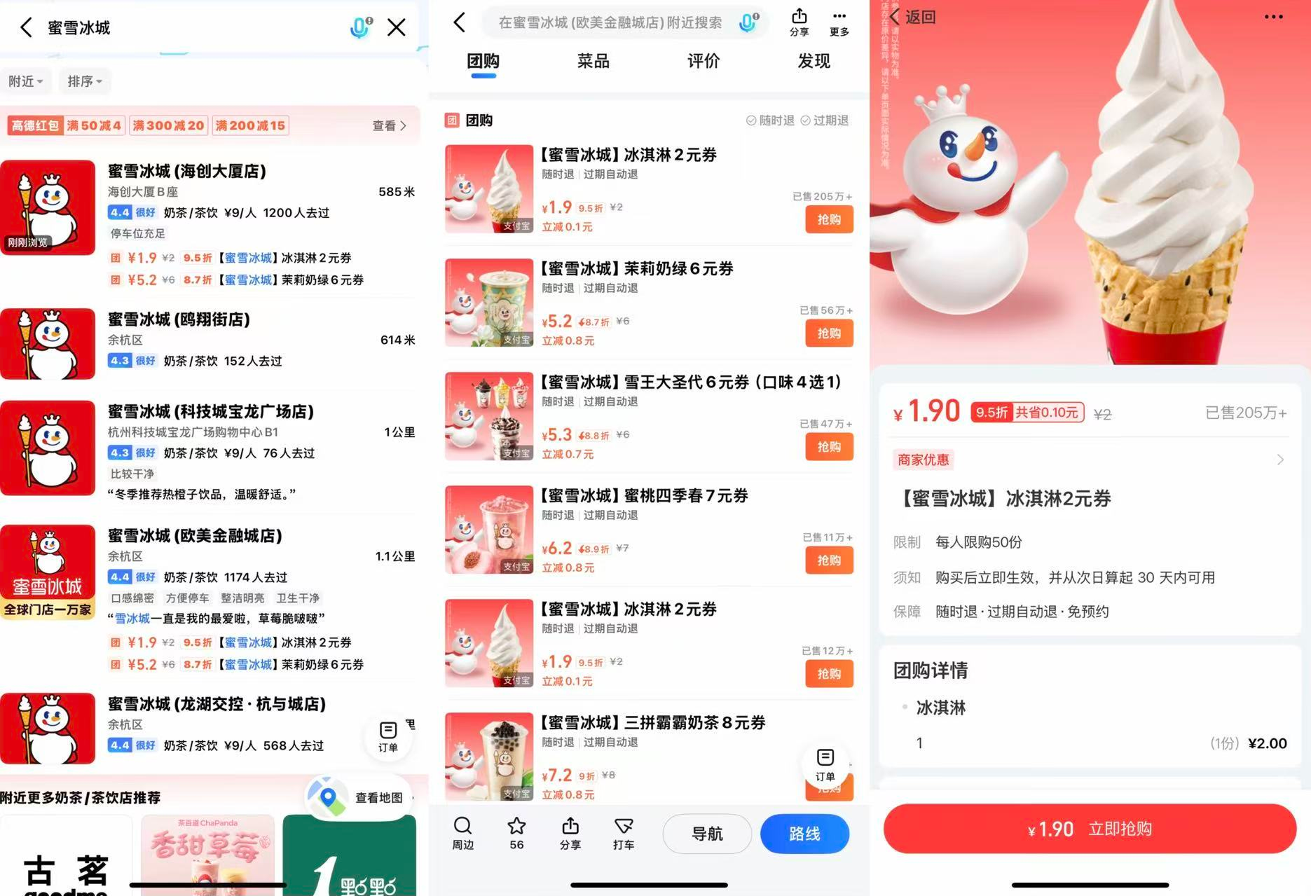 以杭州未来科技城为例,这片区域的五家蜜雪冰城已有2家接入了高德团购,还有3家并未接入。