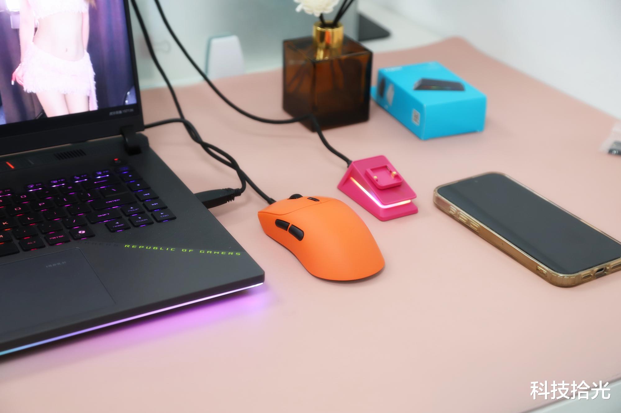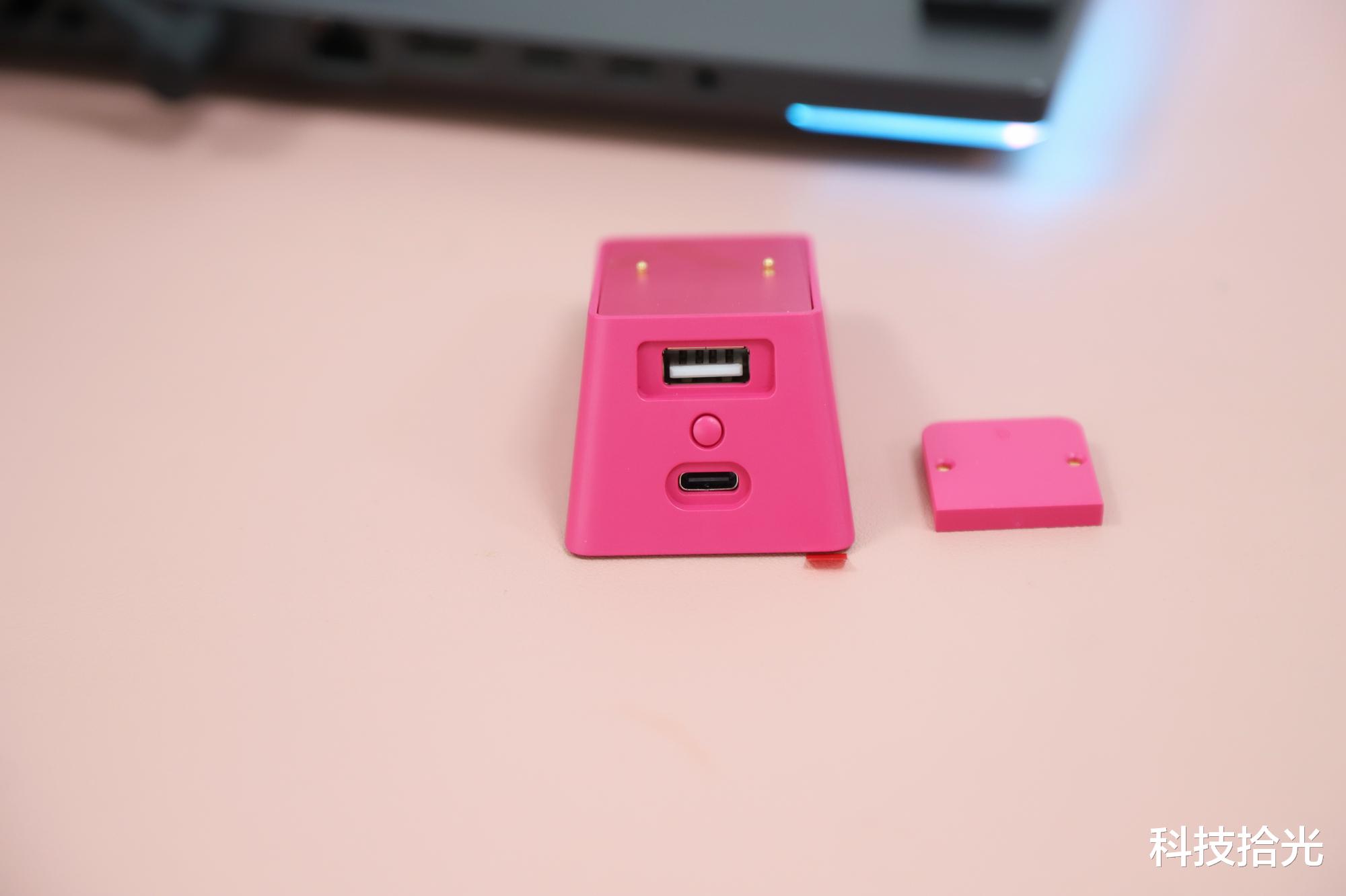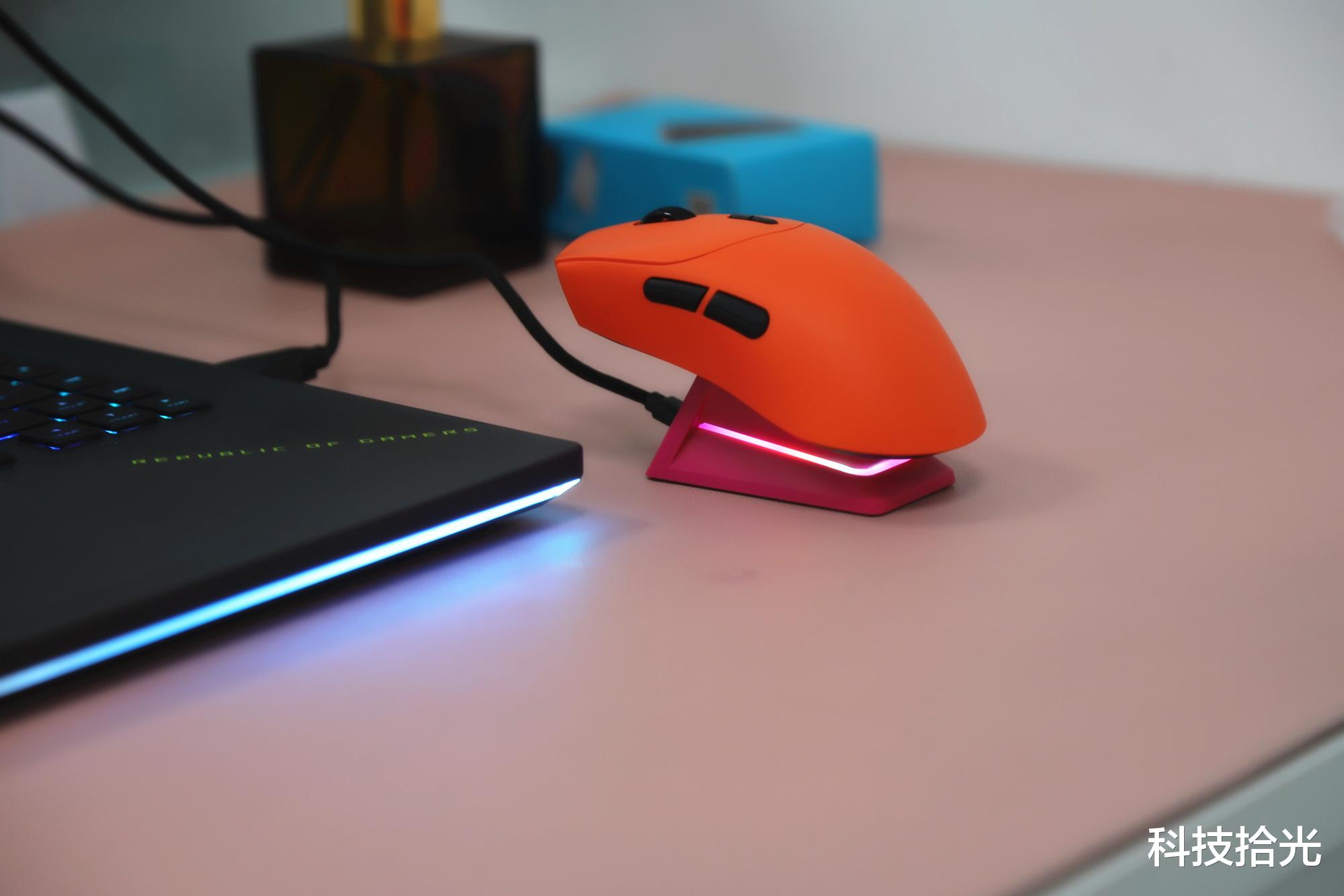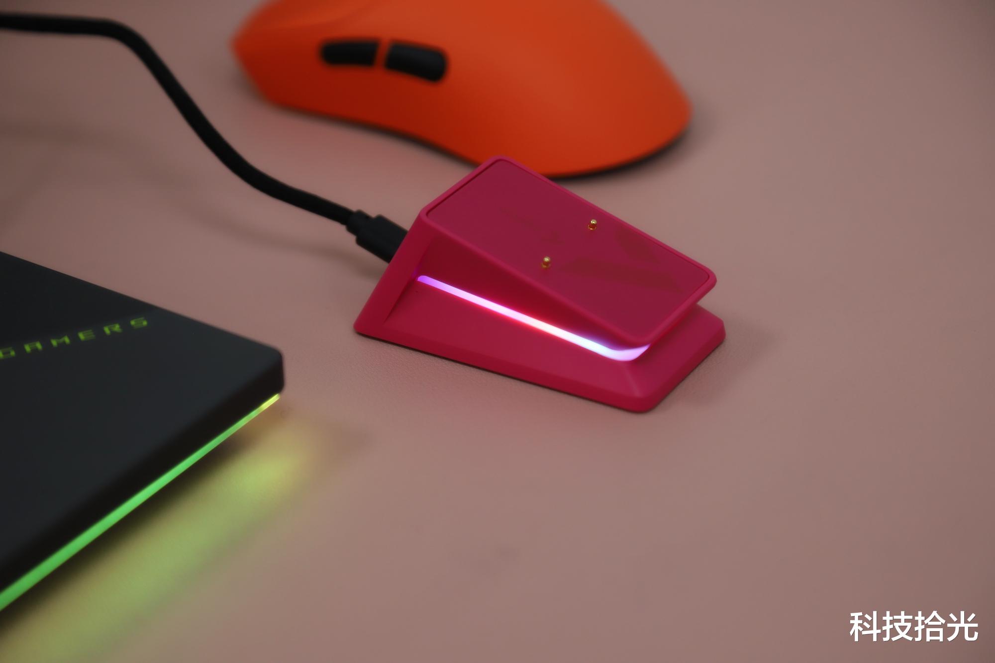 雷柏在几年前就推出了雷柏P5标准版的触点充电底座,靠近腰线位置也是RGB设计。如今已经有了新款的P5 PLUS升级款触点充电底座。颜色多选,我感觉橙色和粉色都是非常不错的颜色。