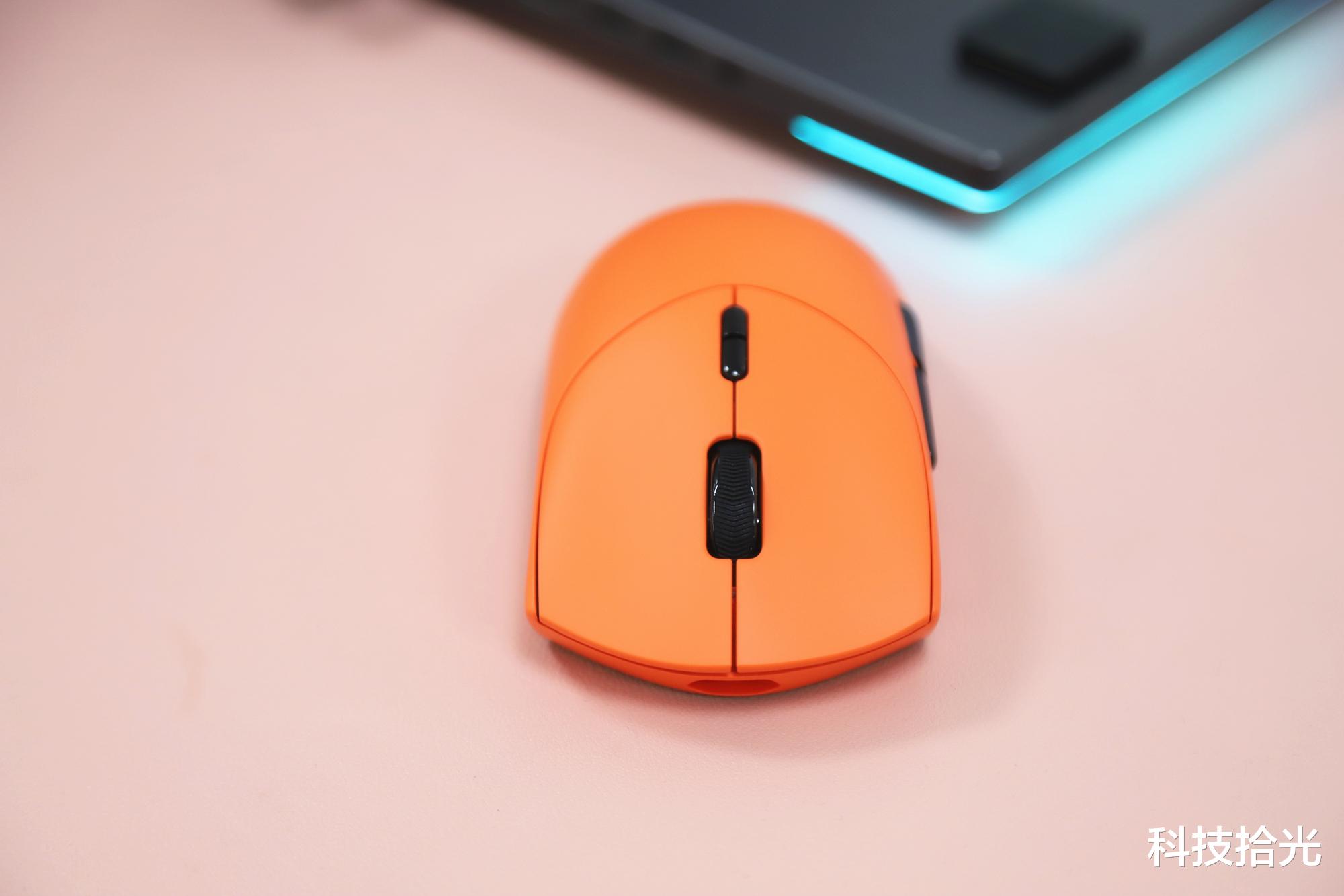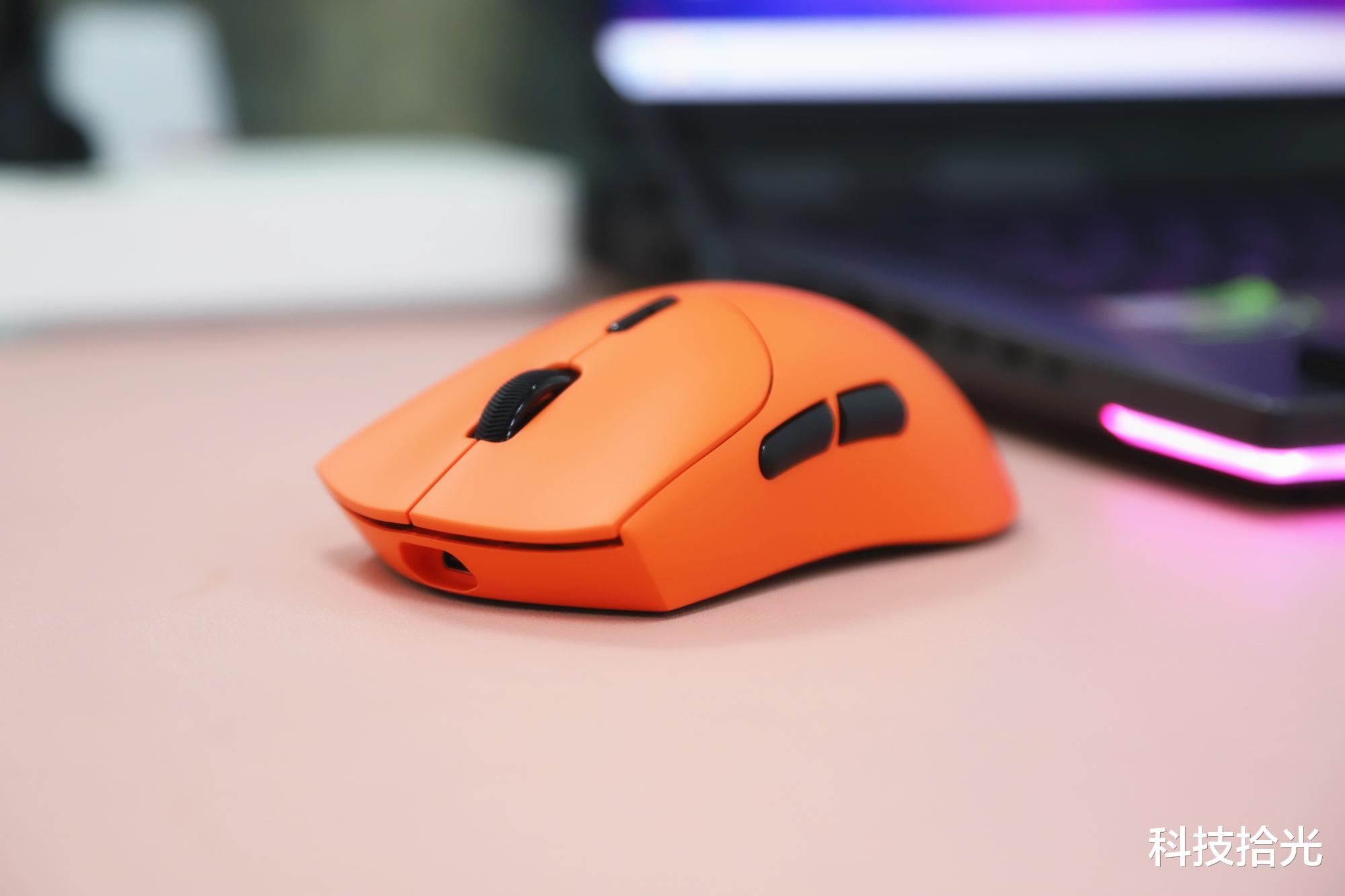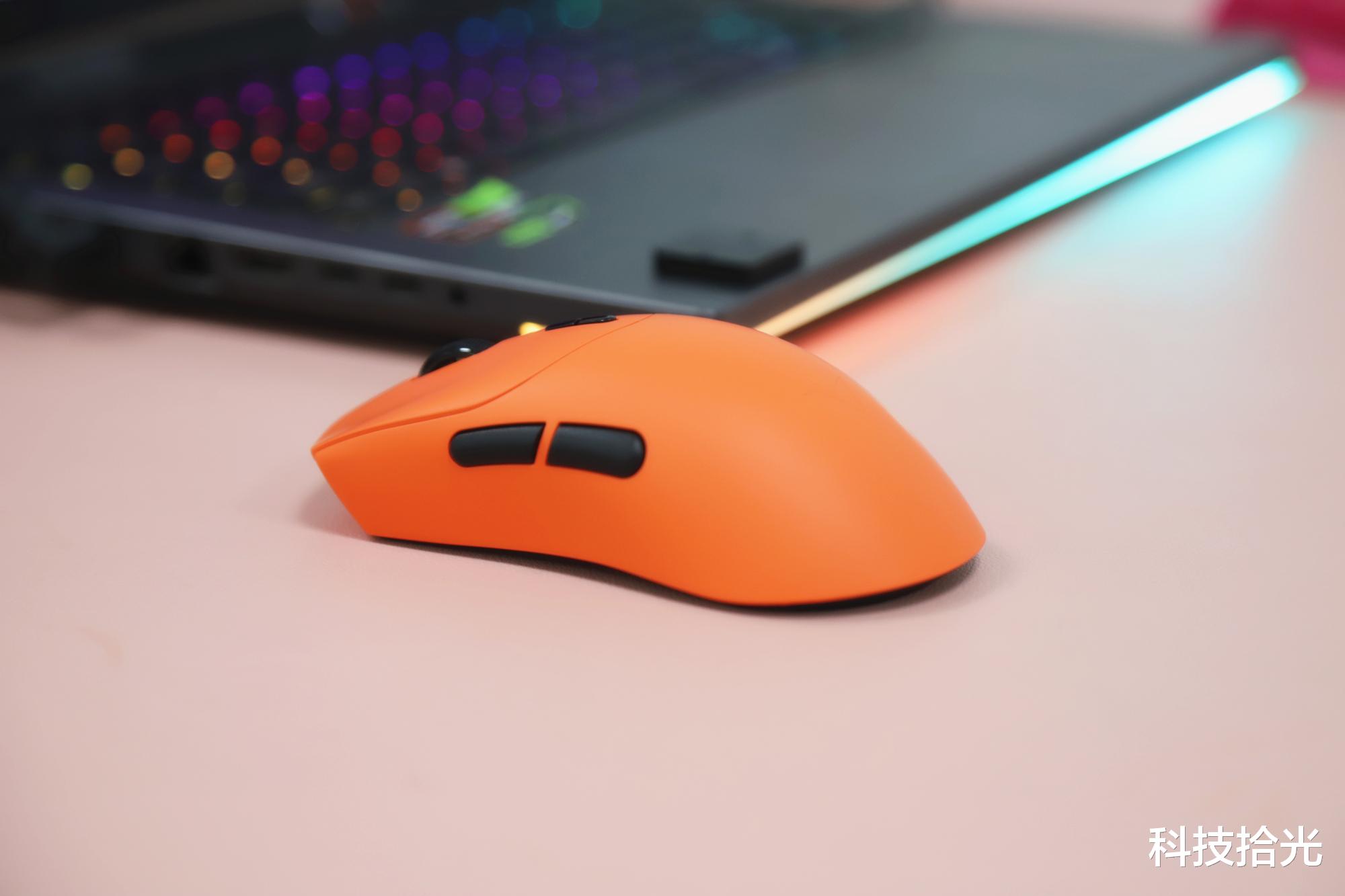而焰影橙色款的雷柏VT7二代也确实够正也够靓。这款鼠标采用了右手设计,造型类似毒蝰,可以为右手玩家提供更好的手感。机身尺寸为127*64*40mm,适配19-21cm的中大手型,堪称“多握法万金油”。