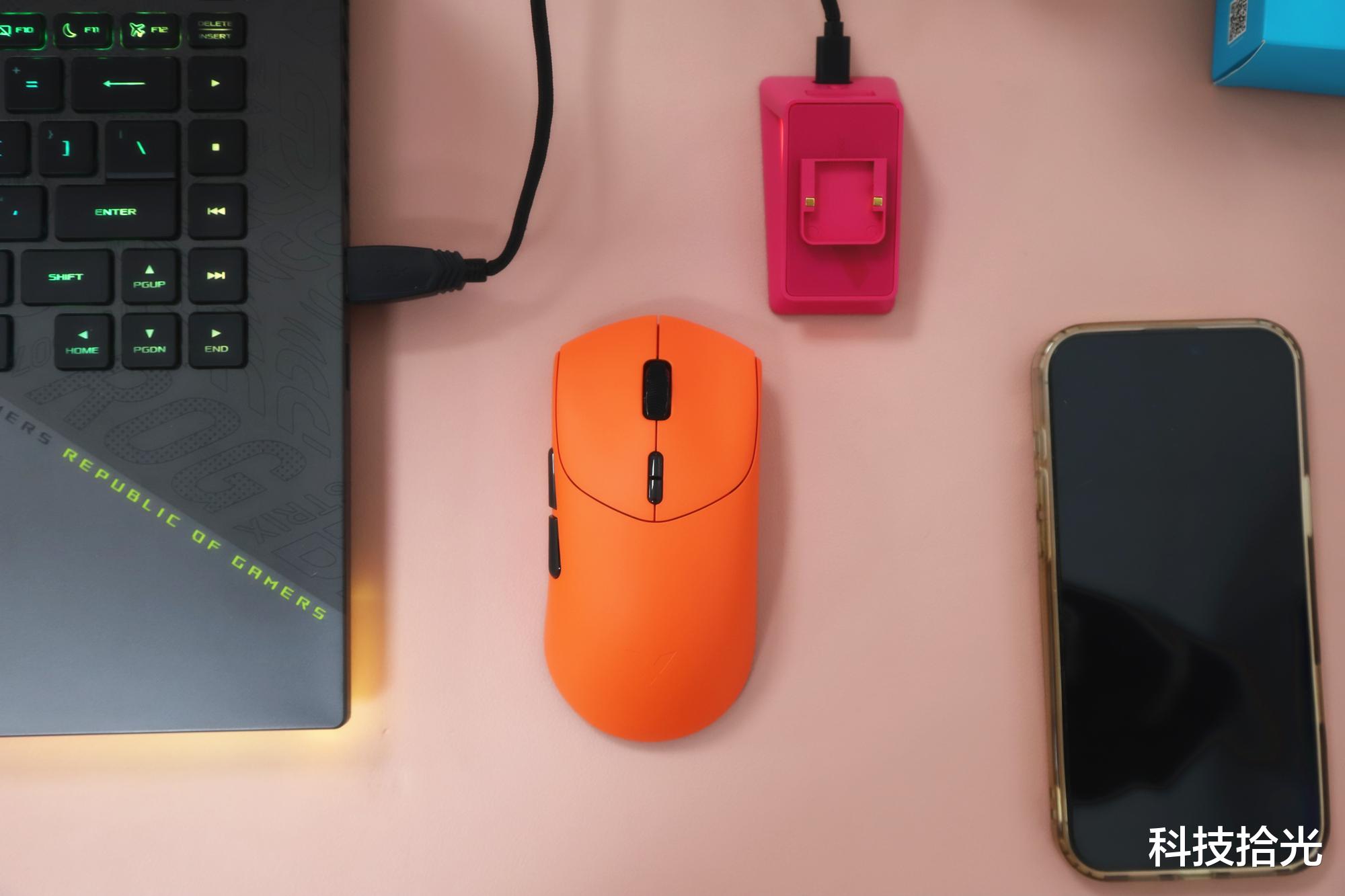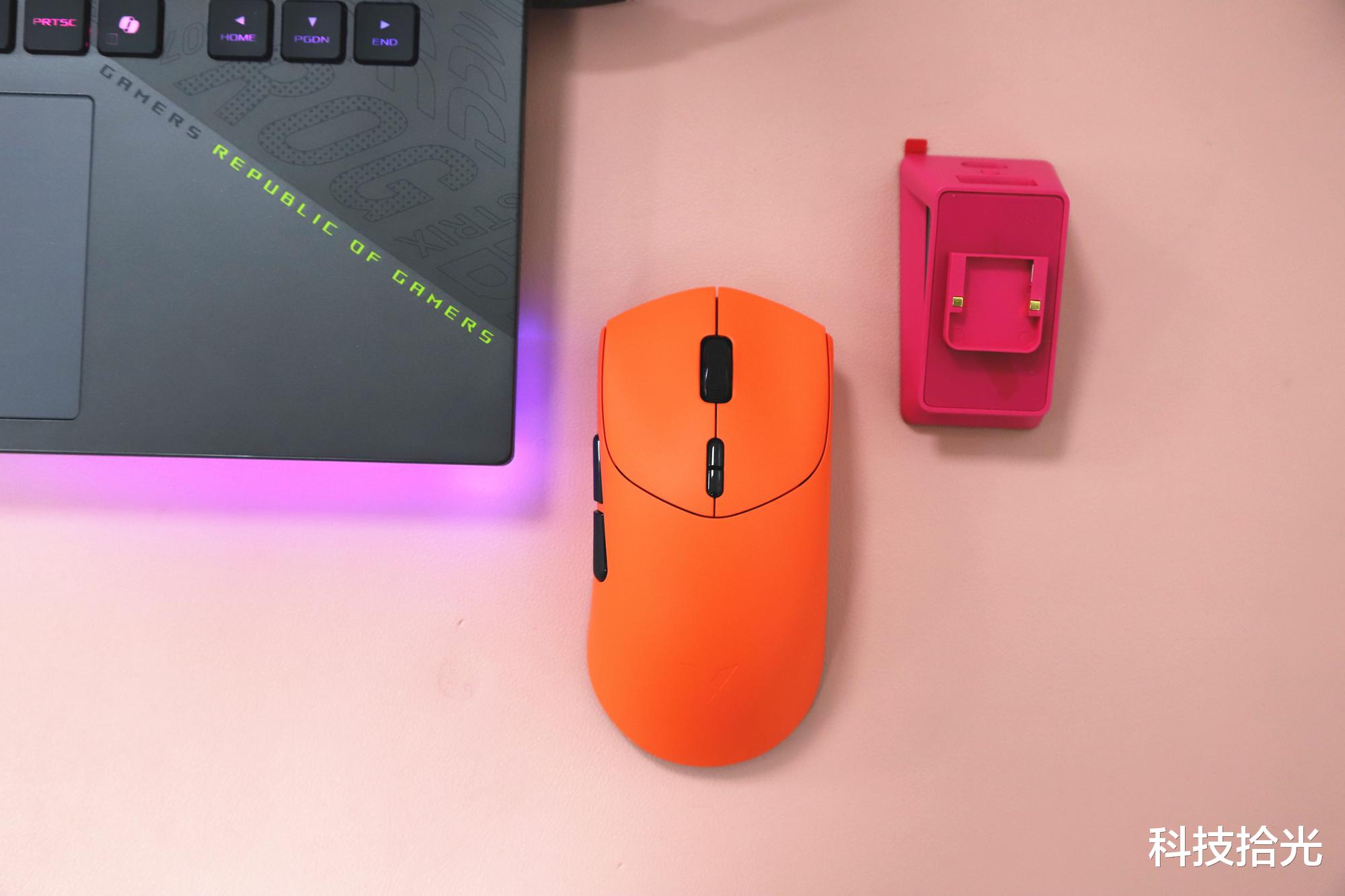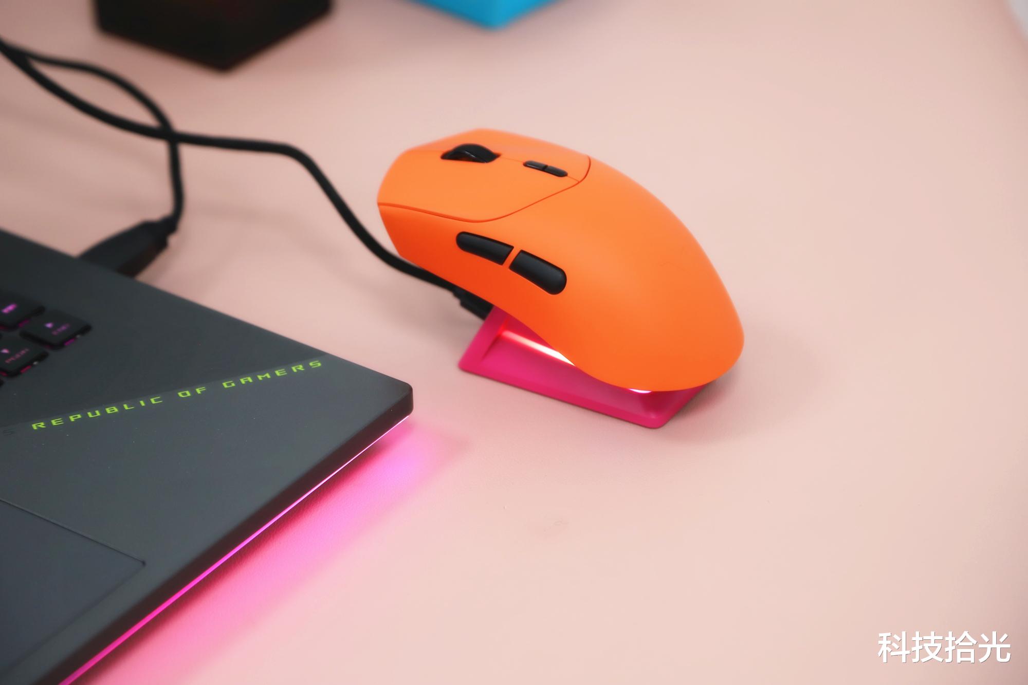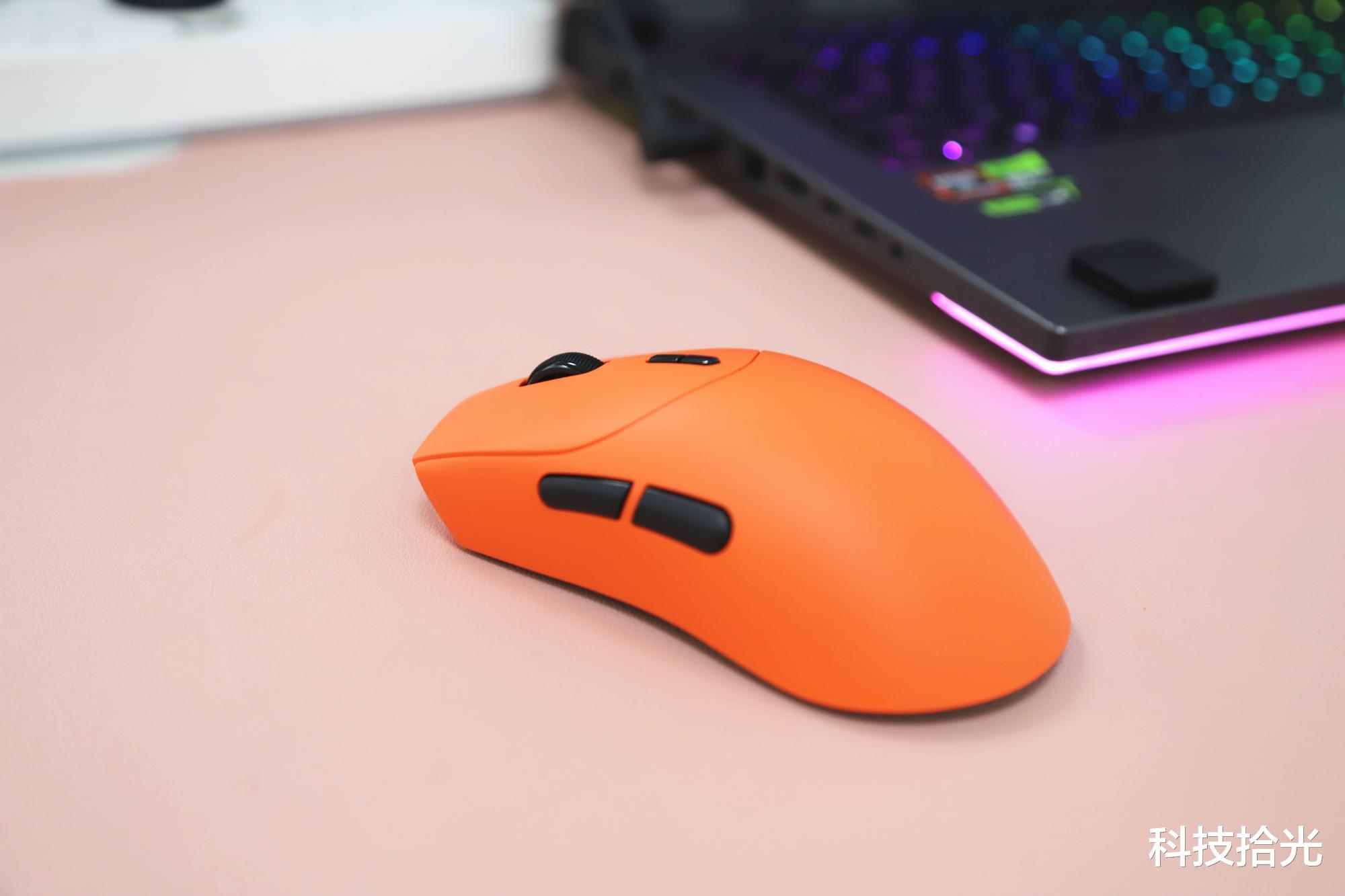 而焰影橙色款的雷柏VT7二代也确实够正也够靓。这款鼠标采用了右手设计,造型类似毒蝰,可以为右手玩家提供更好的手感。机身尺寸为127*64*40mm,适配19-21cm的中大手型,堪称“多握法万金油”。