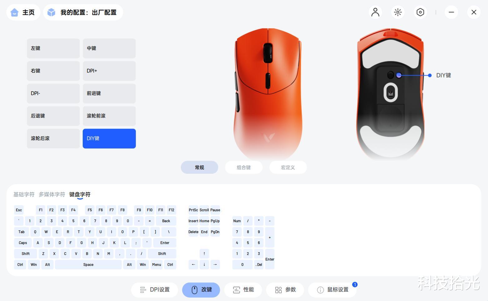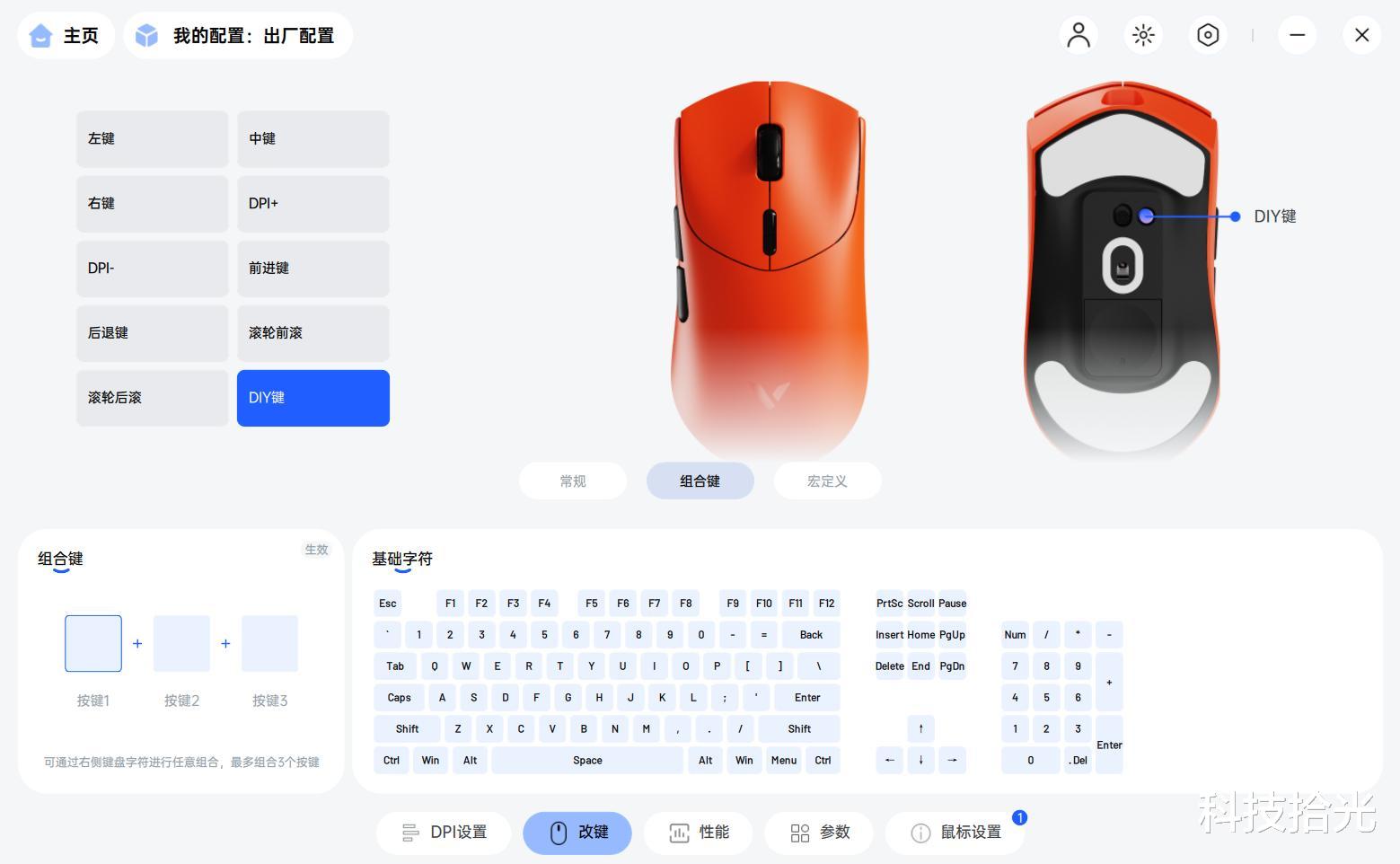 紧接着就是改键页设置。比如上文提到的DIY按键,这里可以通过自定义设置实现非常多的按键组合命令来执行。