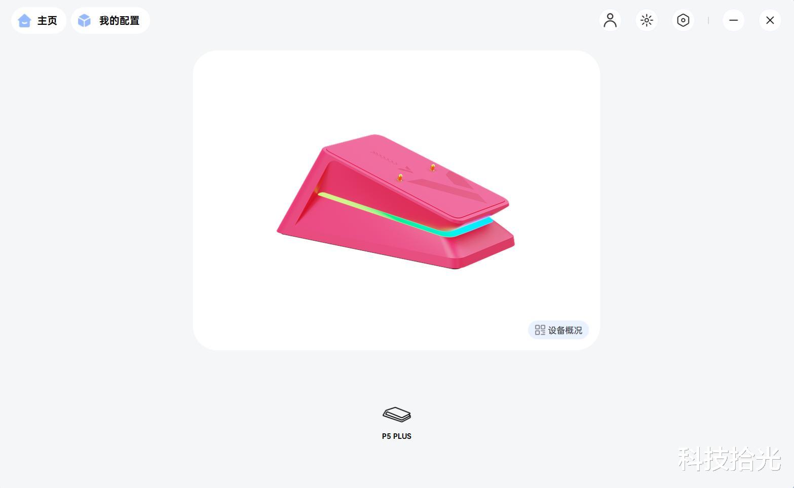 打开驱动,先接入雷柏P5 PLUS,在底座设置栏可以设置颜色(以后启动驱动首页就会看到正确的产品颜色显示),还可以在线OTA更新产品驱动。