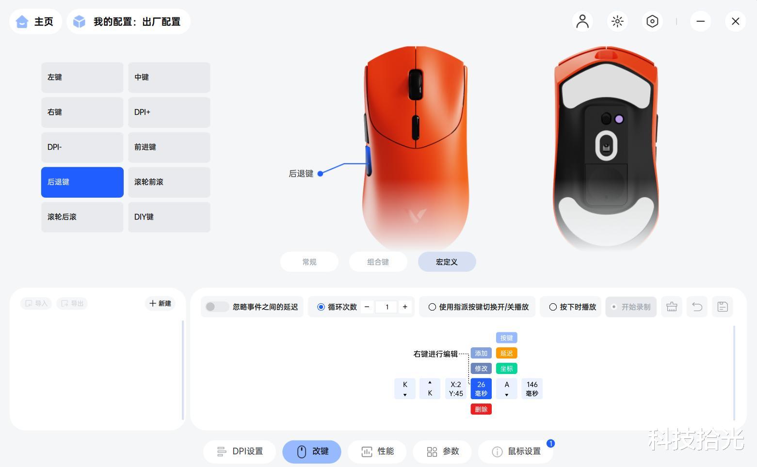 针对鼠标侧键,还可以进行宏命令编程,实现游戏内一连串的快捷操作,非常实用。